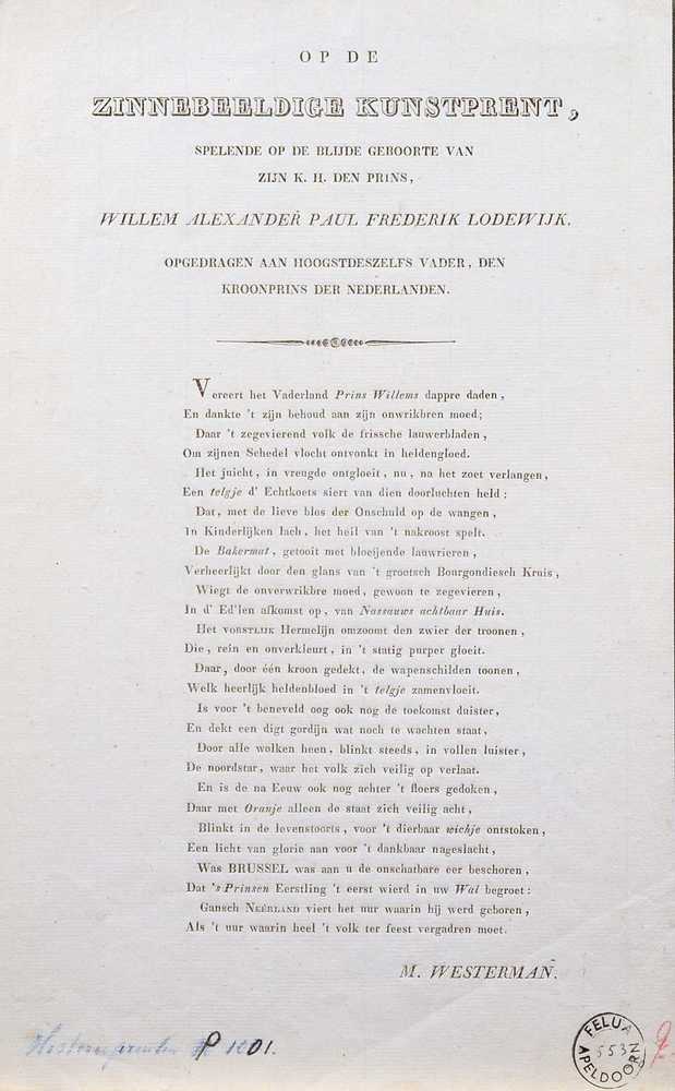 Gedicht ter geboorte Willem III