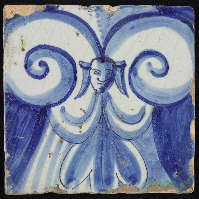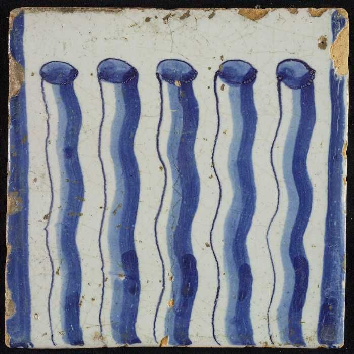 Tegel van schoorsteenpilaster, blauw op wit, deel va...