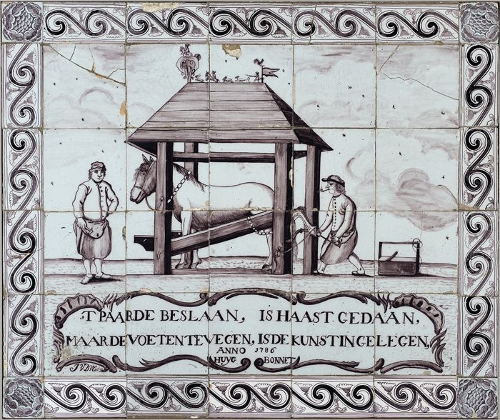 Paars tegeltableau, hoefsmid aan het werk