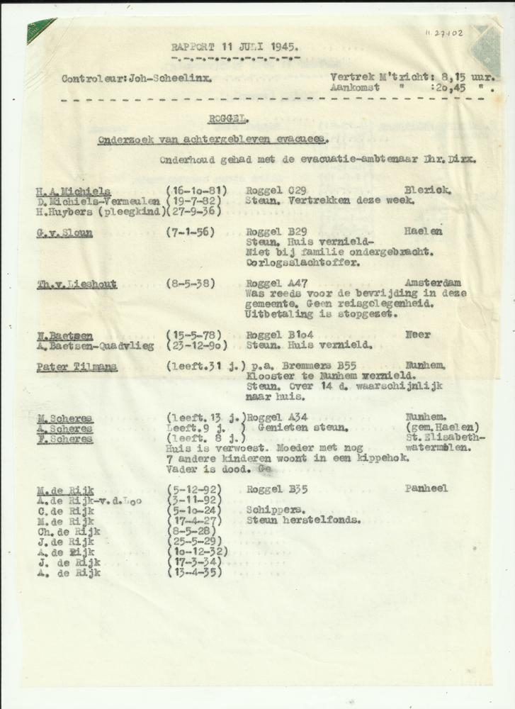 Rapport 11 juli 1945 bezoek Roggel door J. Schellinx,