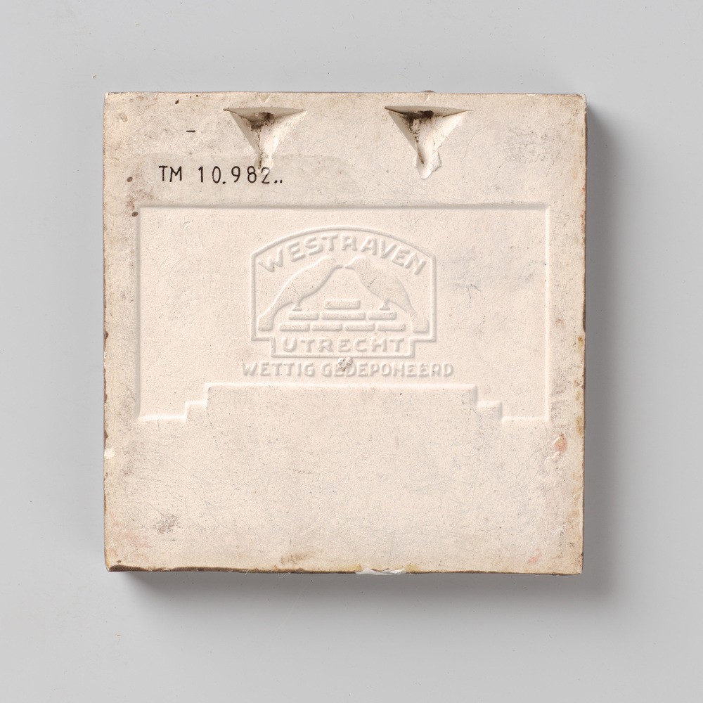 tegel van aardewerk met tinglazuur, voorstellende: h...