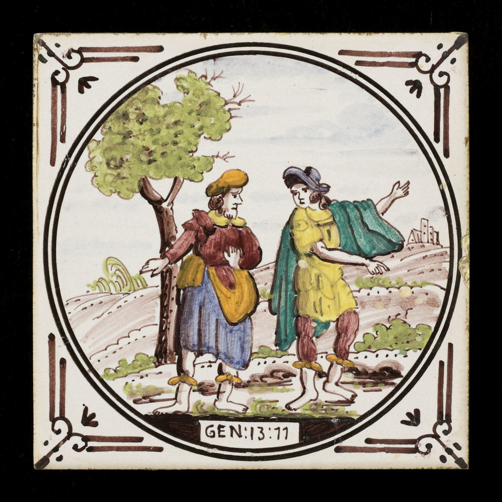 Tegel van keramiek met tinglazuur, voorstellende: Ab...