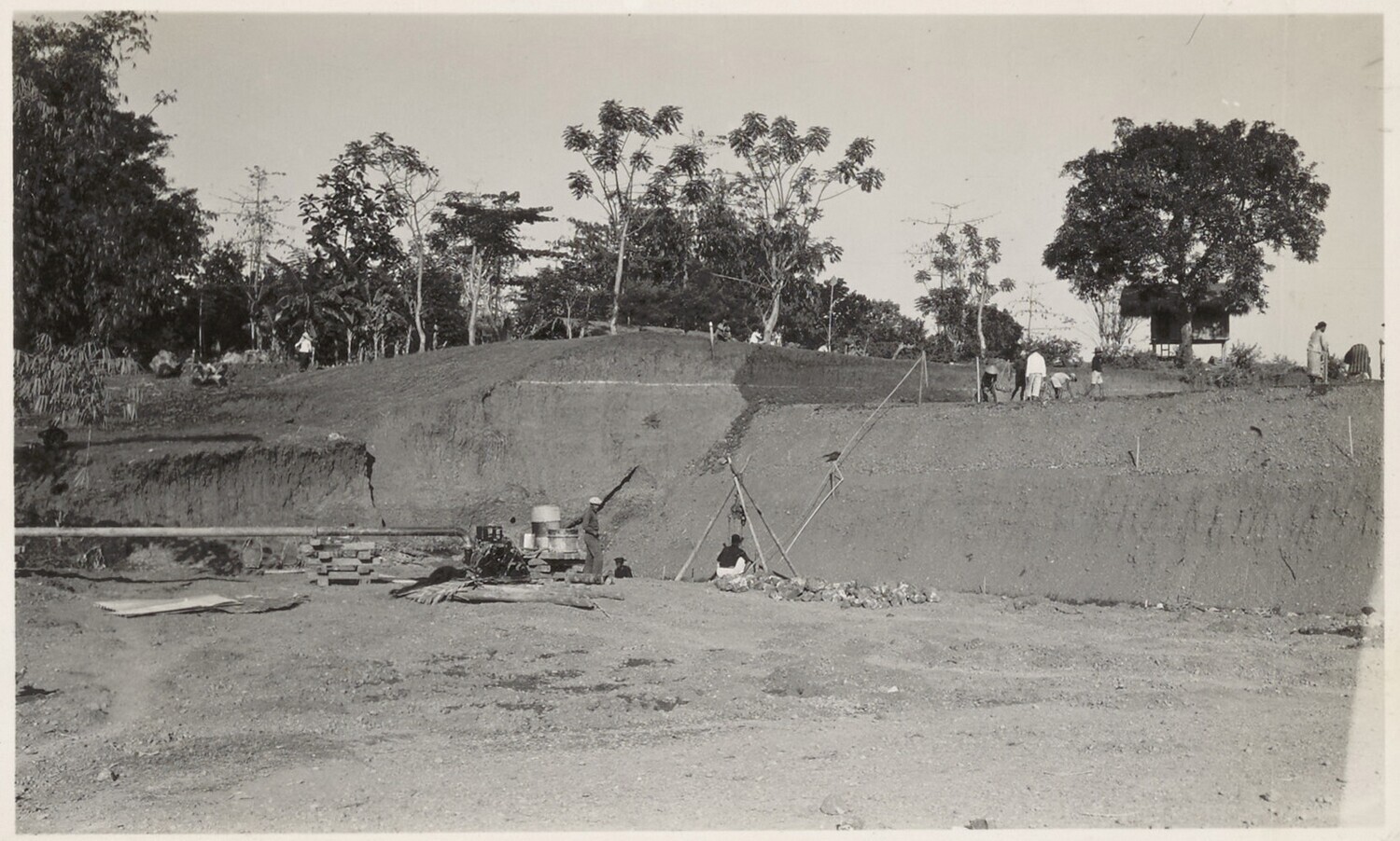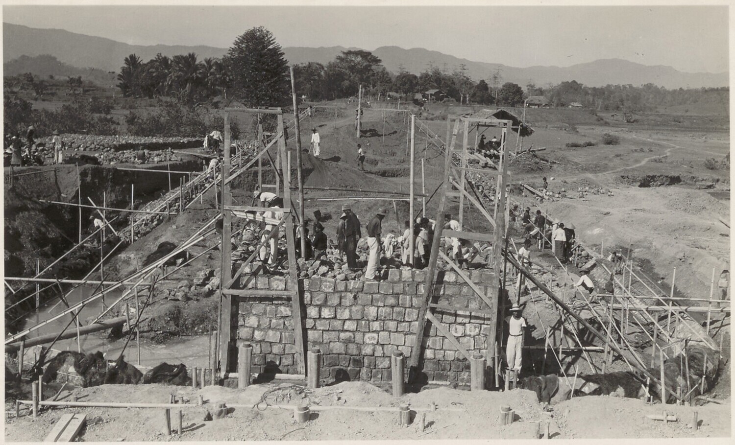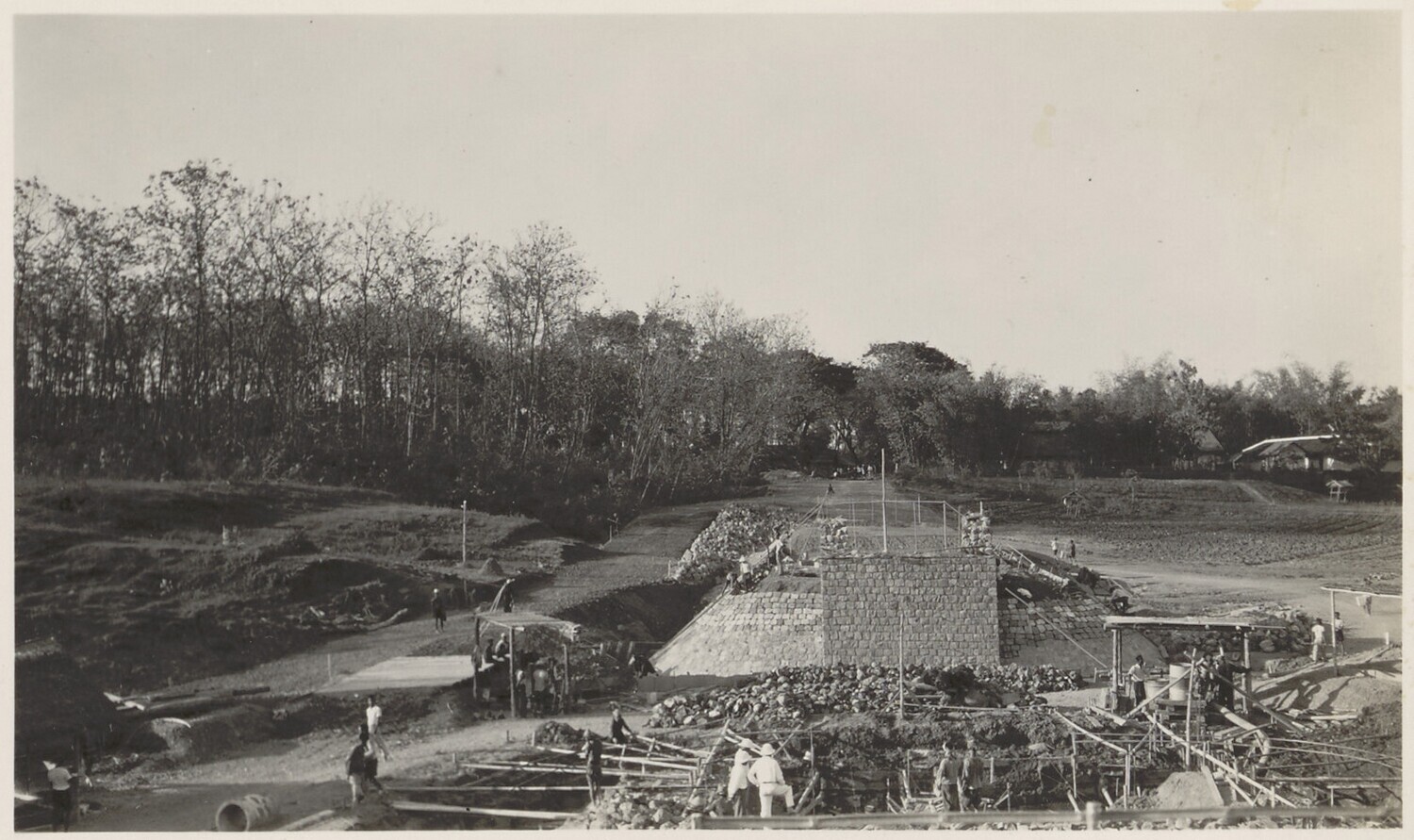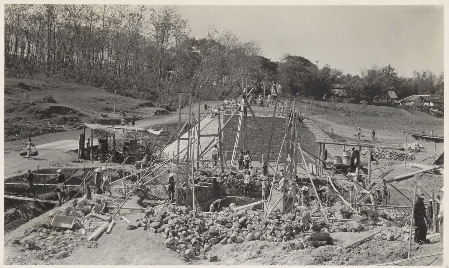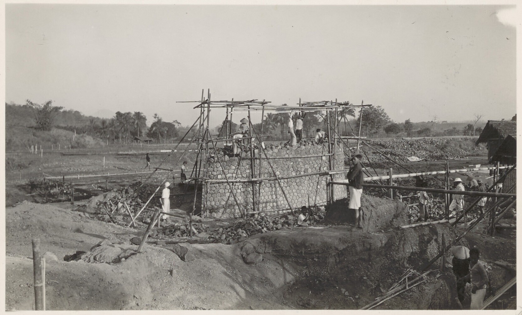 Ontgraving van een landhoofd bij de brug van Tjiheuleut