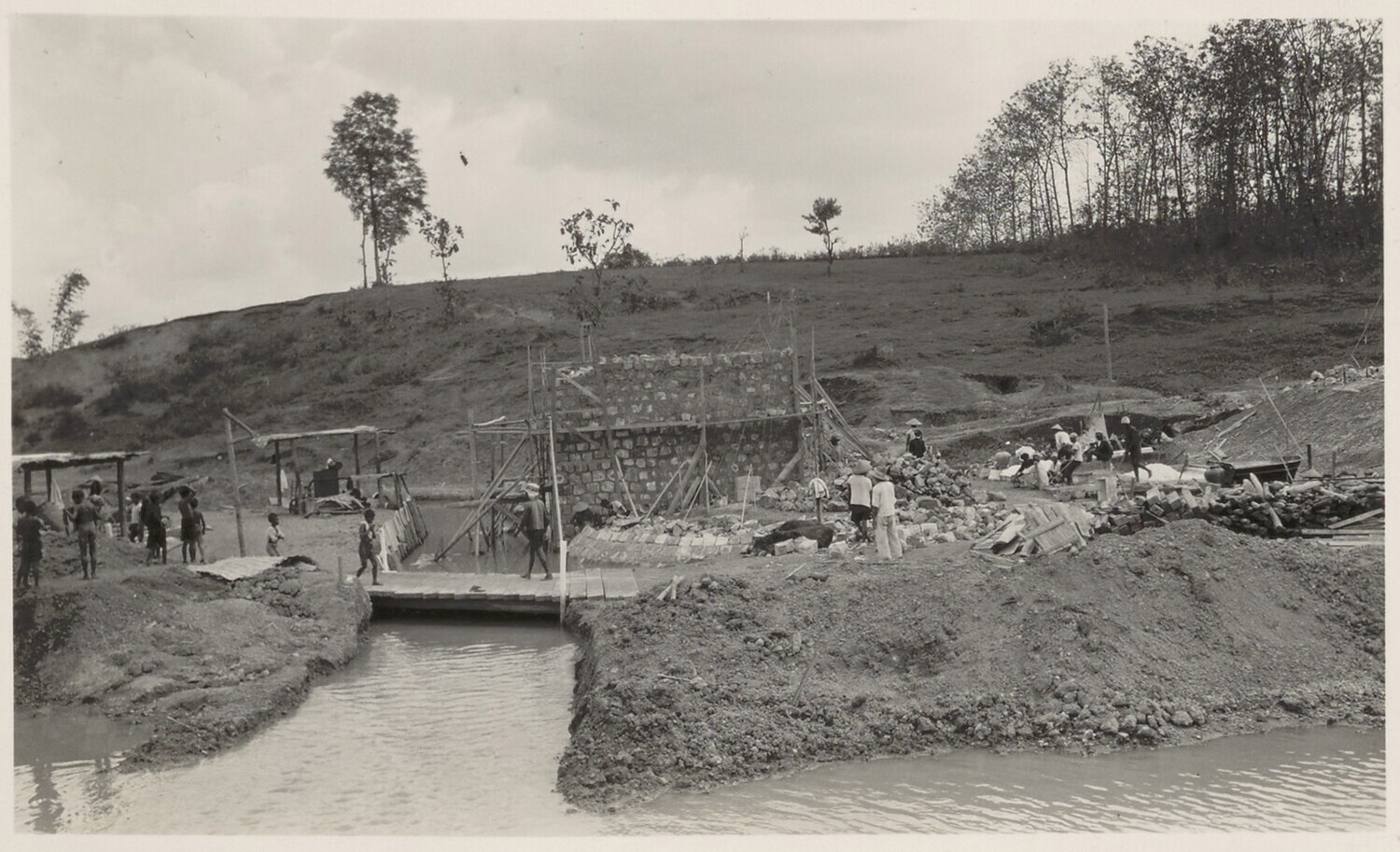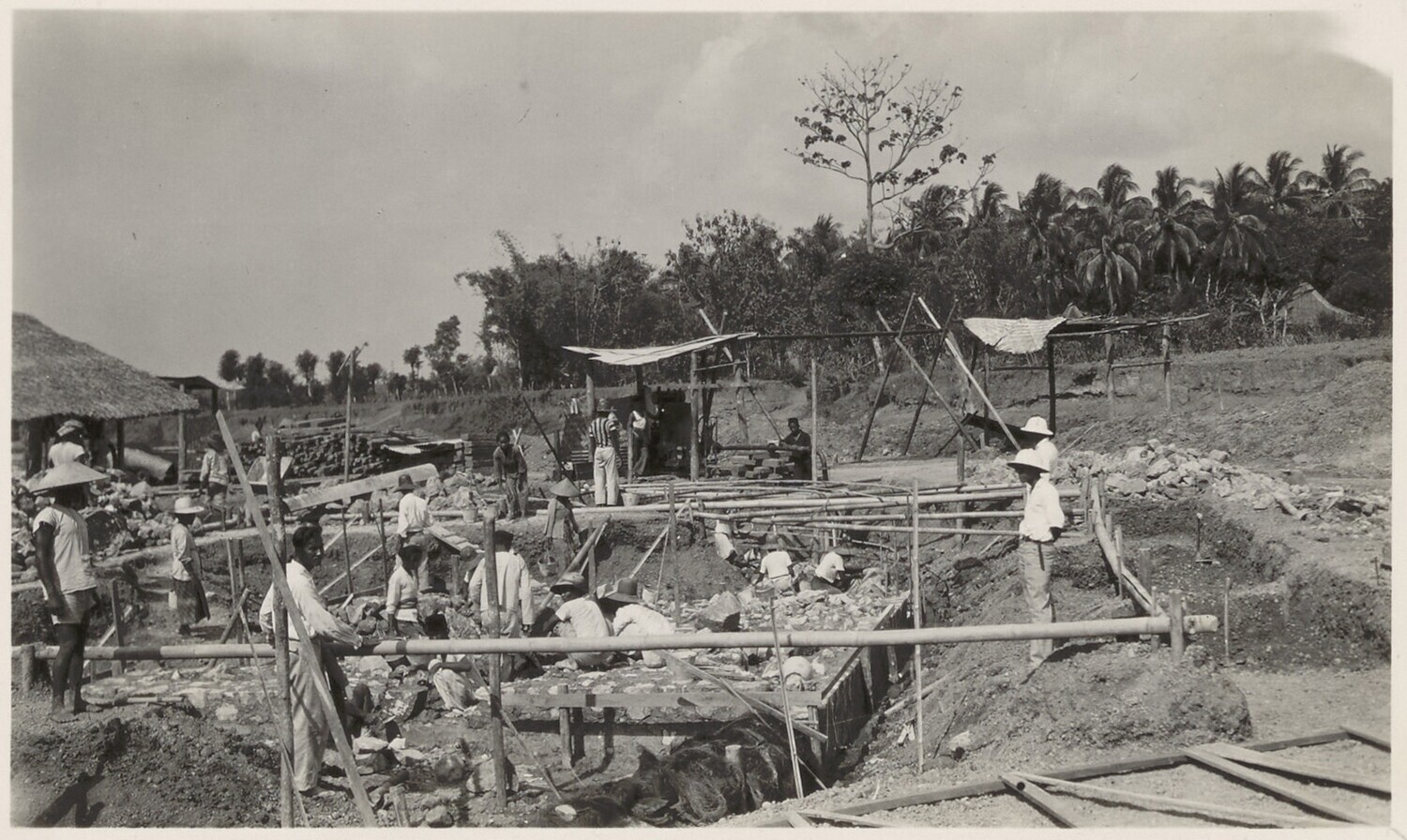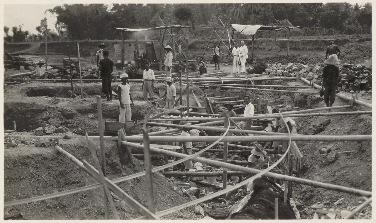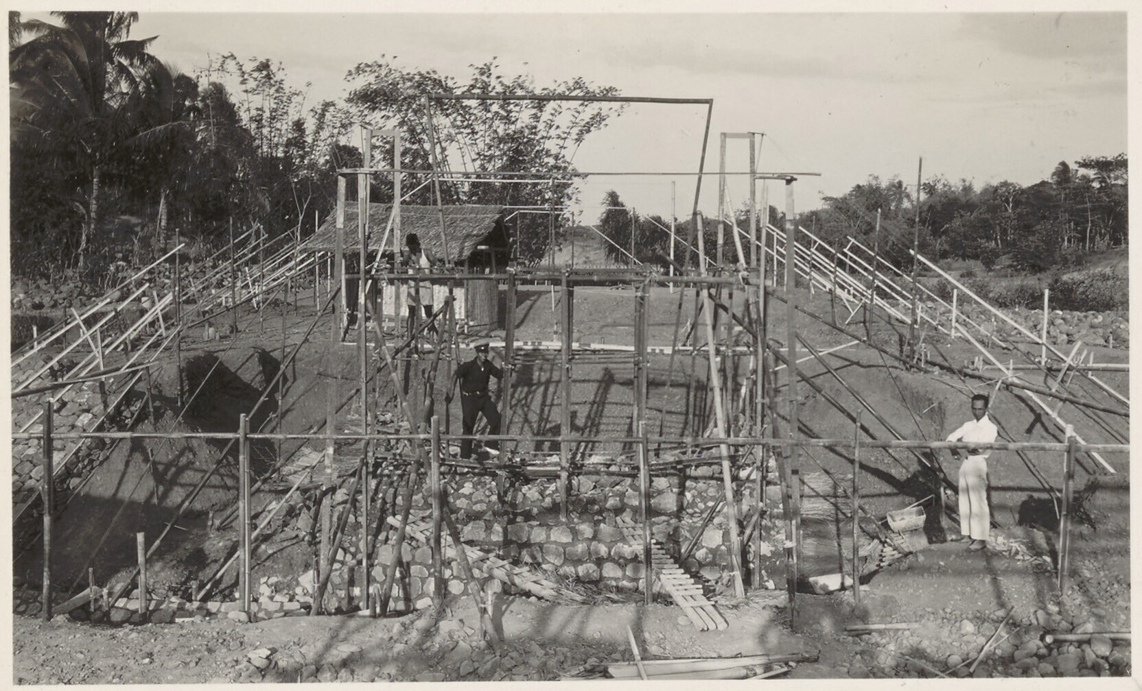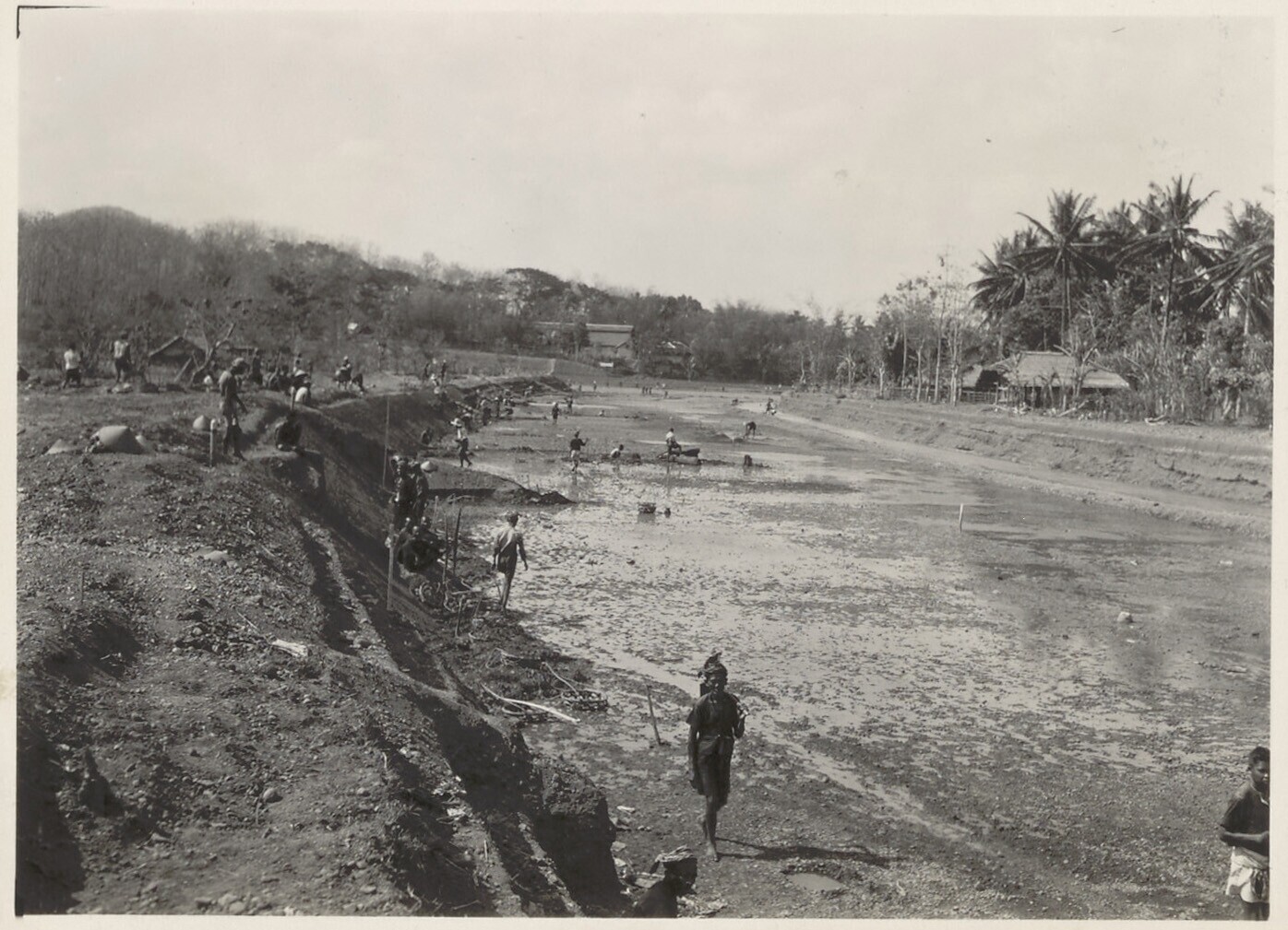 Ontgraving van een landhoofd bij de brug van Tjiheuleut