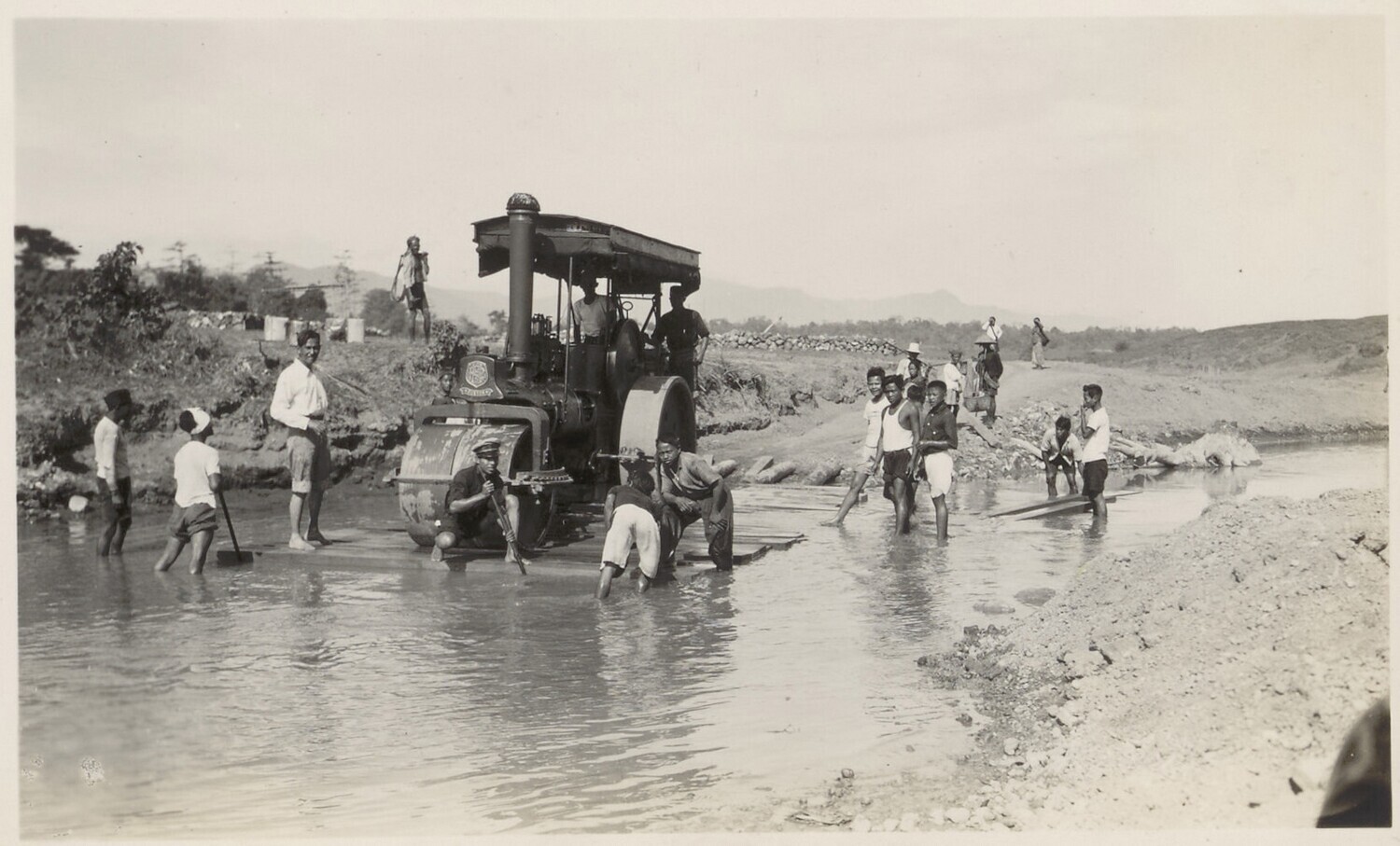 Transport van een wals over een rivier