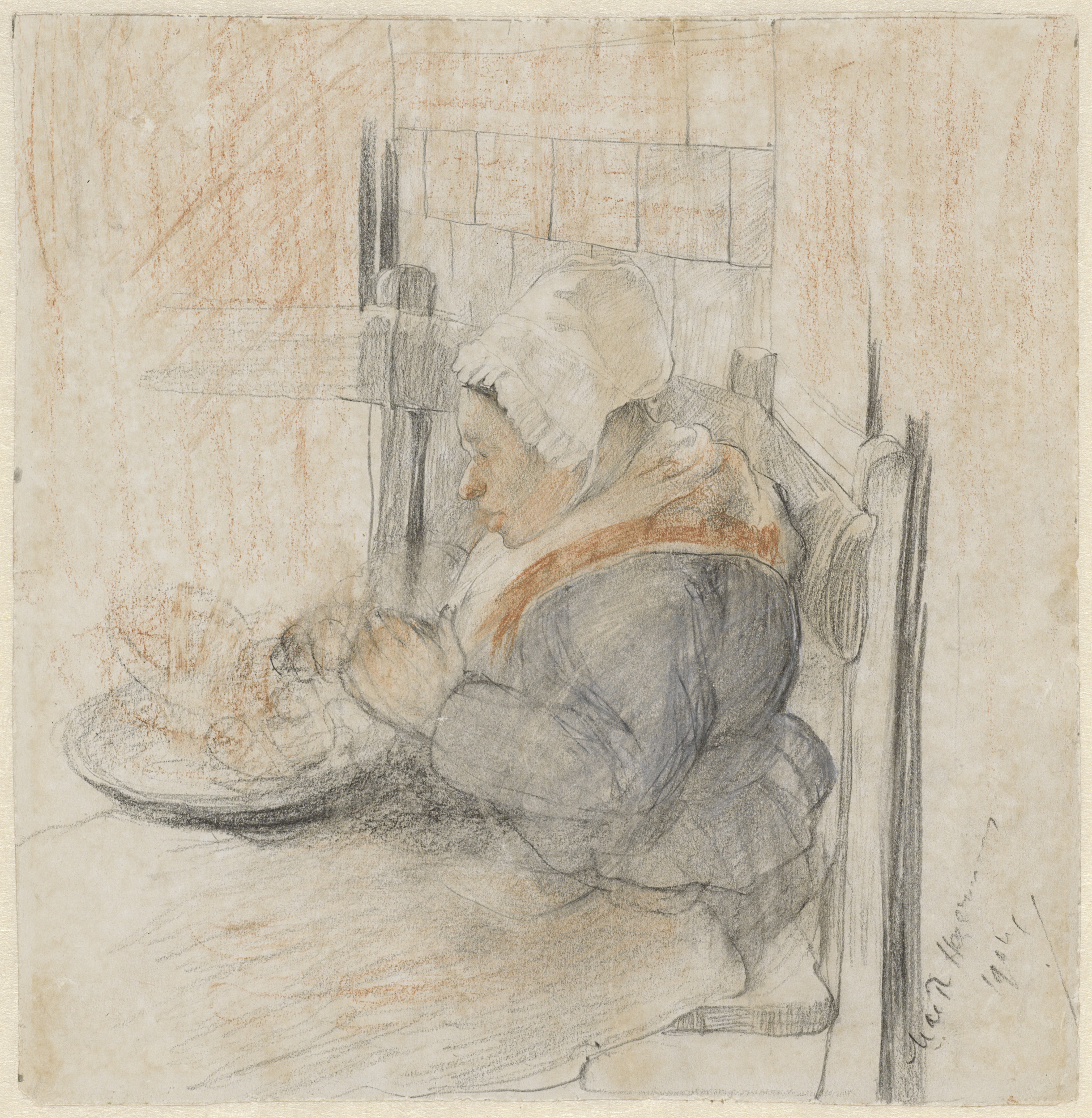 Boerenvrouw aan tafel