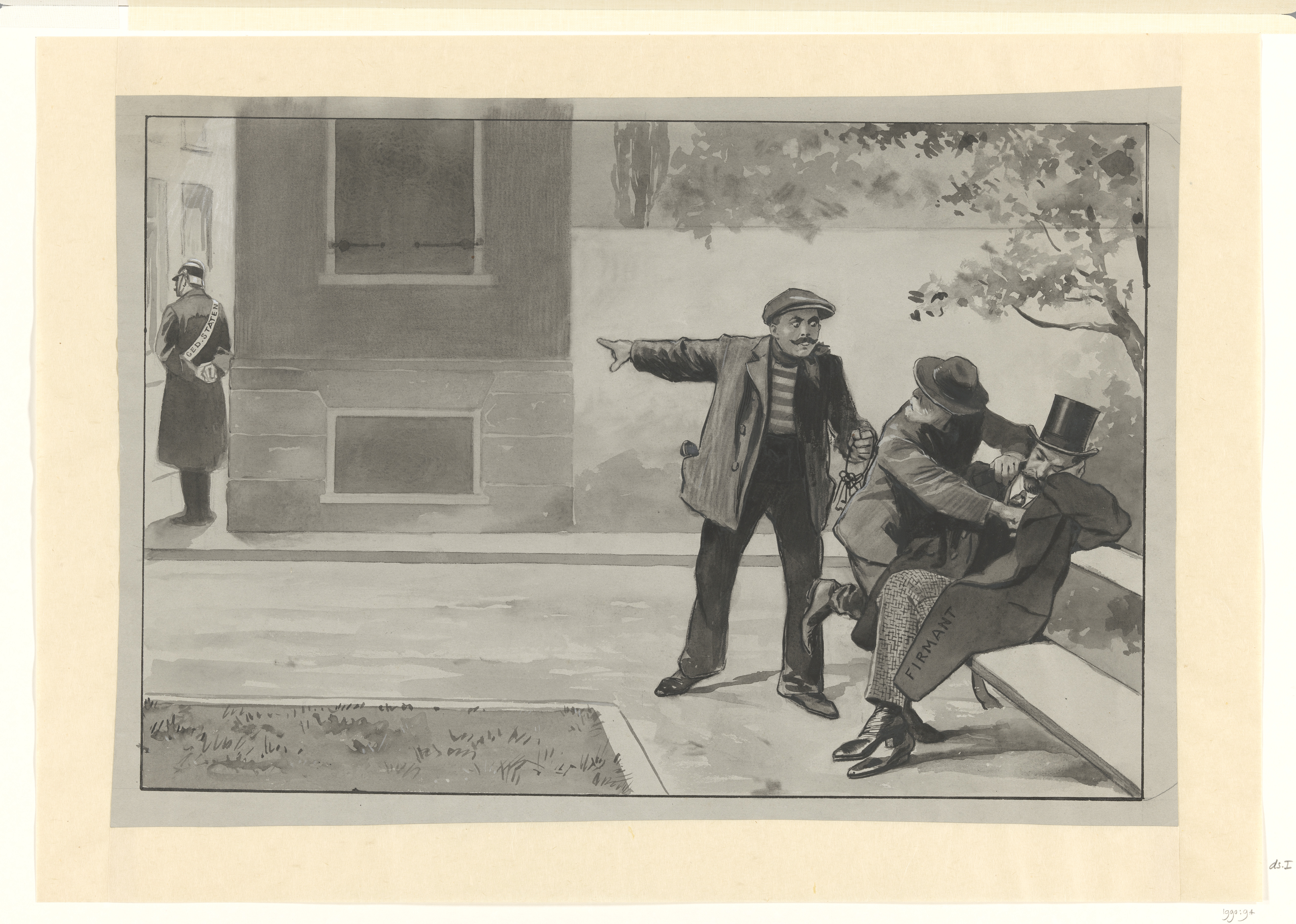 Ontwerp voor illustratie in De Amsterdammer: drie st...
