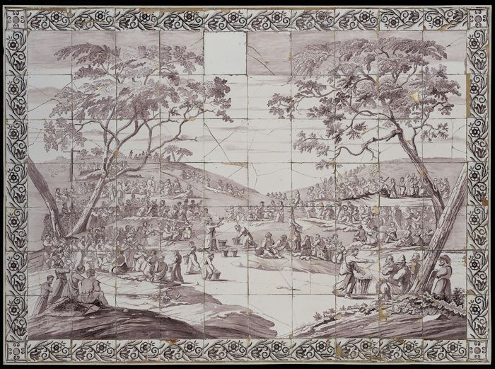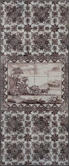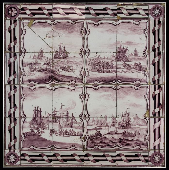 Paars tegeltableau, vier voorstellingen betreffende ...