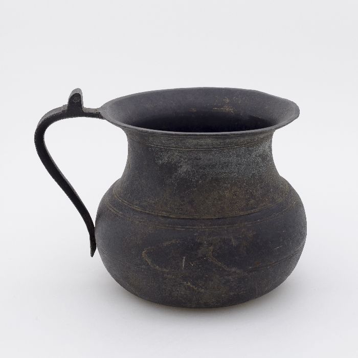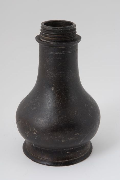 Tinnen zuigfles met peervormig lichaam en schroefdra...