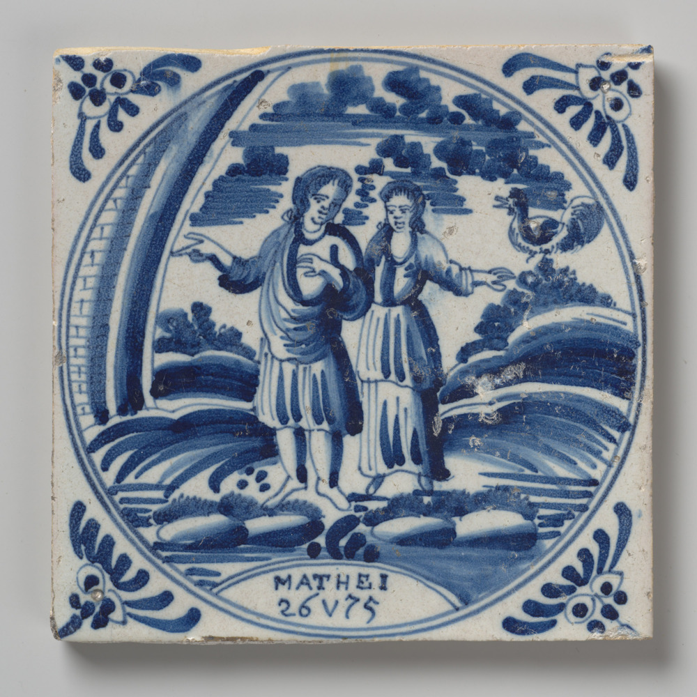 tegel van aardewerk met tinglazuur, voorstellende: P...
