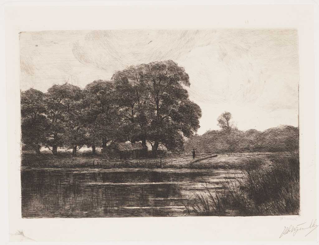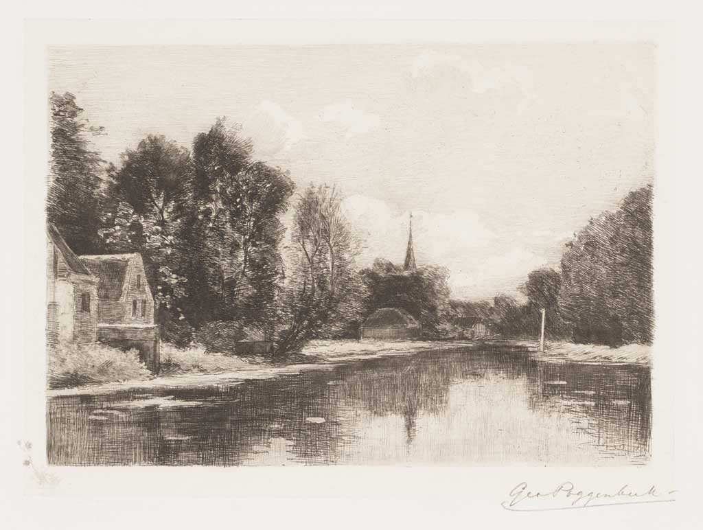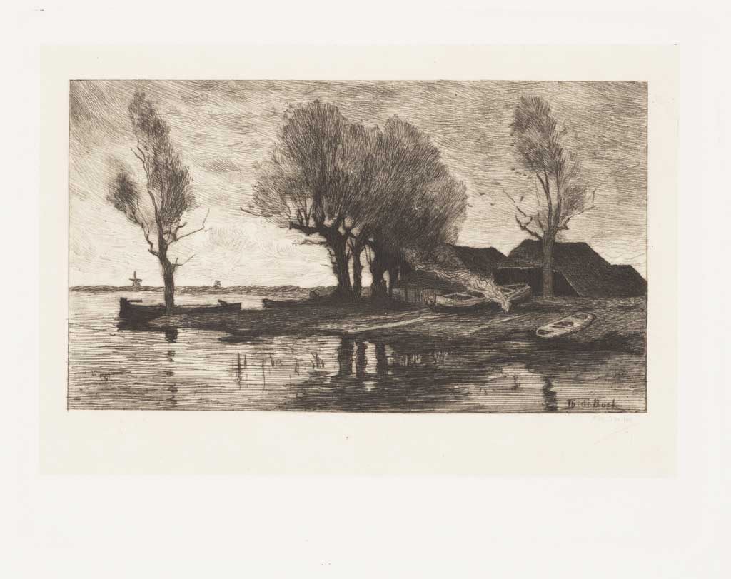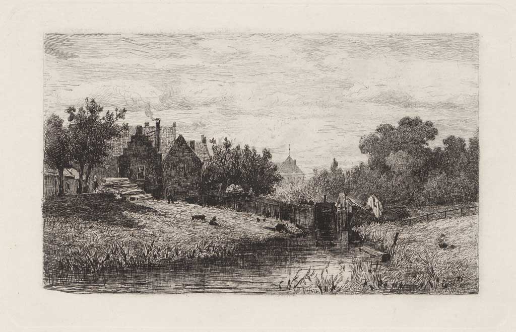 Landschap met water, bomen en boerderijen (naar Th.E...