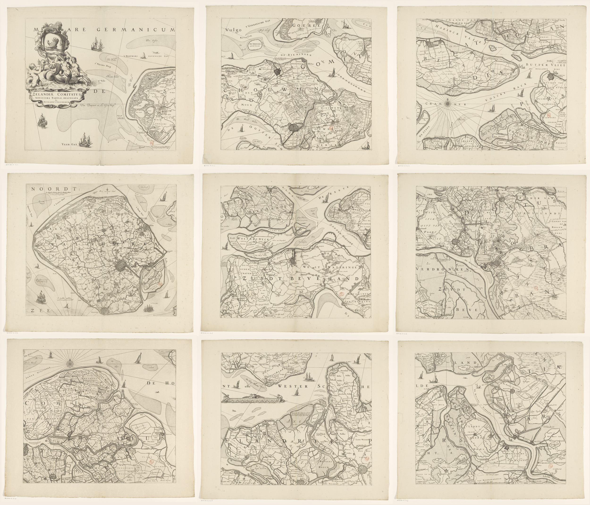 Kaart van Zeeland, bestaande uit negen delen