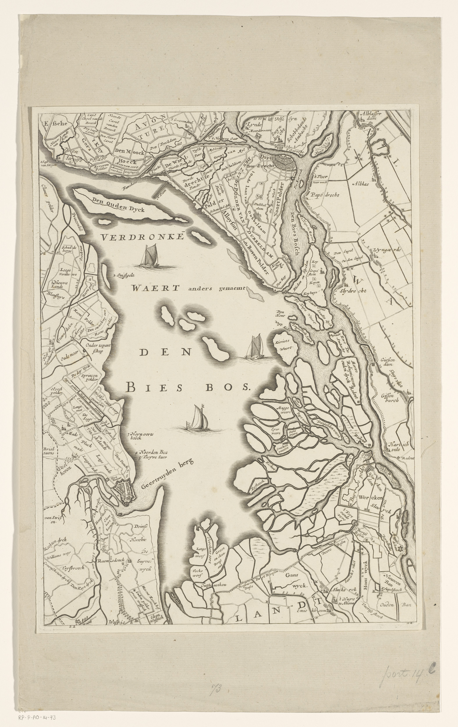 Kaart van het gebied rond de verdronken Zuid-Holland...