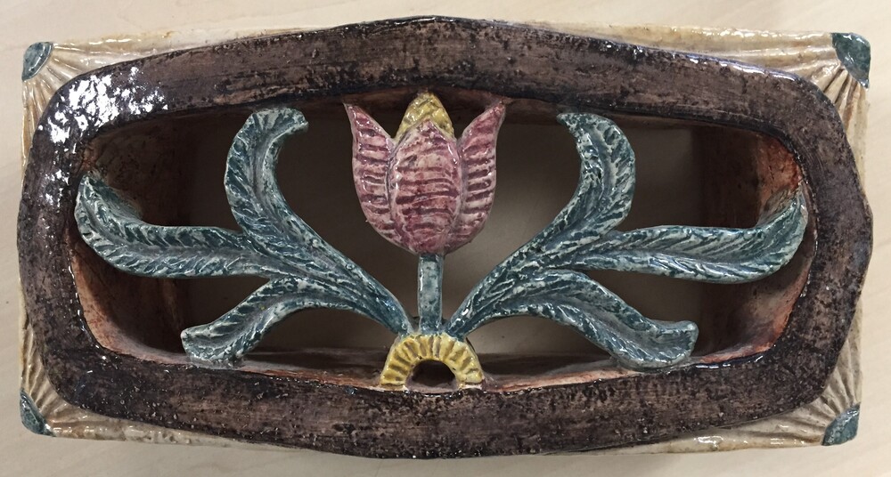 kacheltegel van keramiek in reliëf, voorstellende: t...