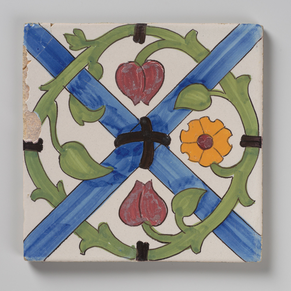 tegel van aardewerk met tinglazuur, voorstellende: t...