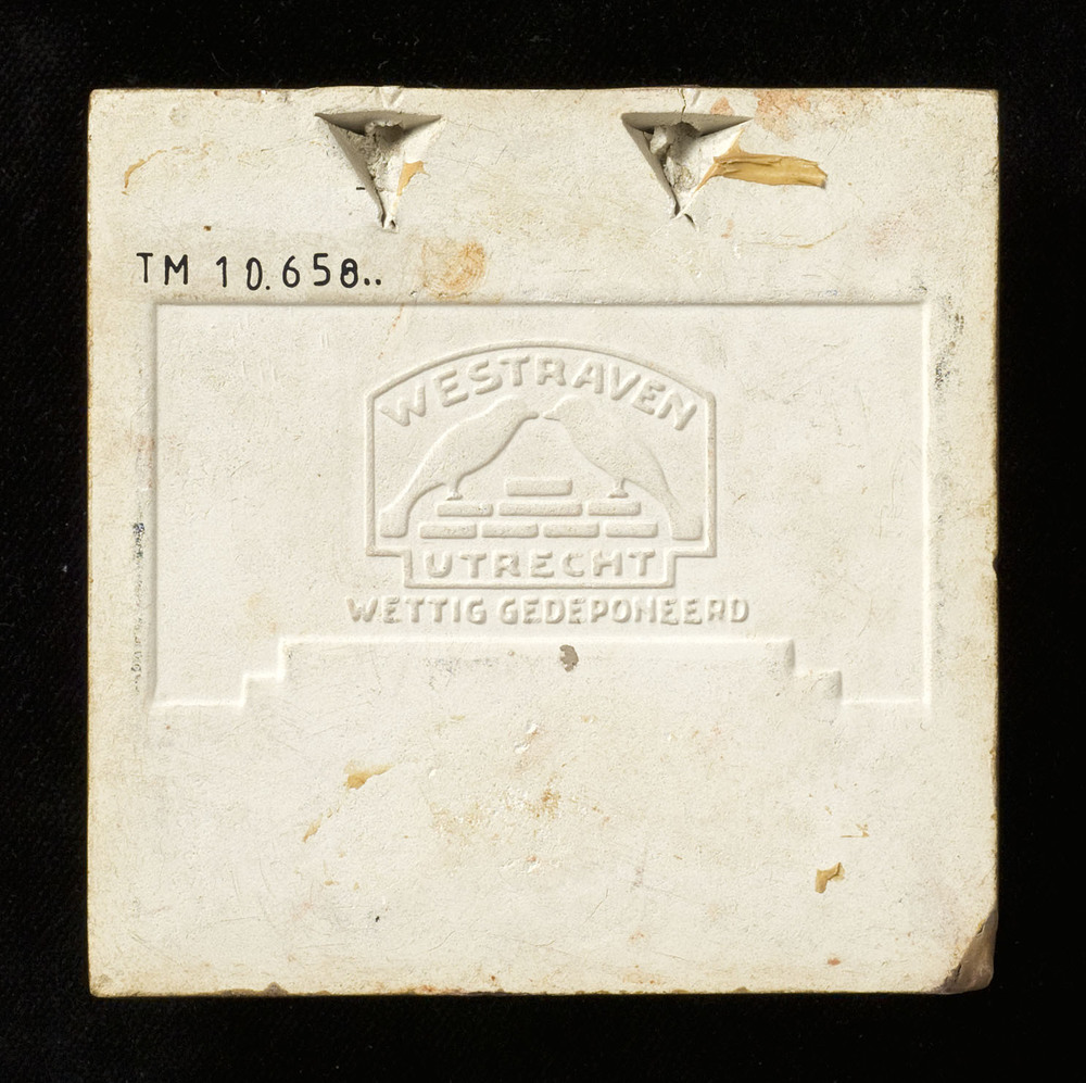 tegel van keramiek met tinglazuur, voorstellende: vo...