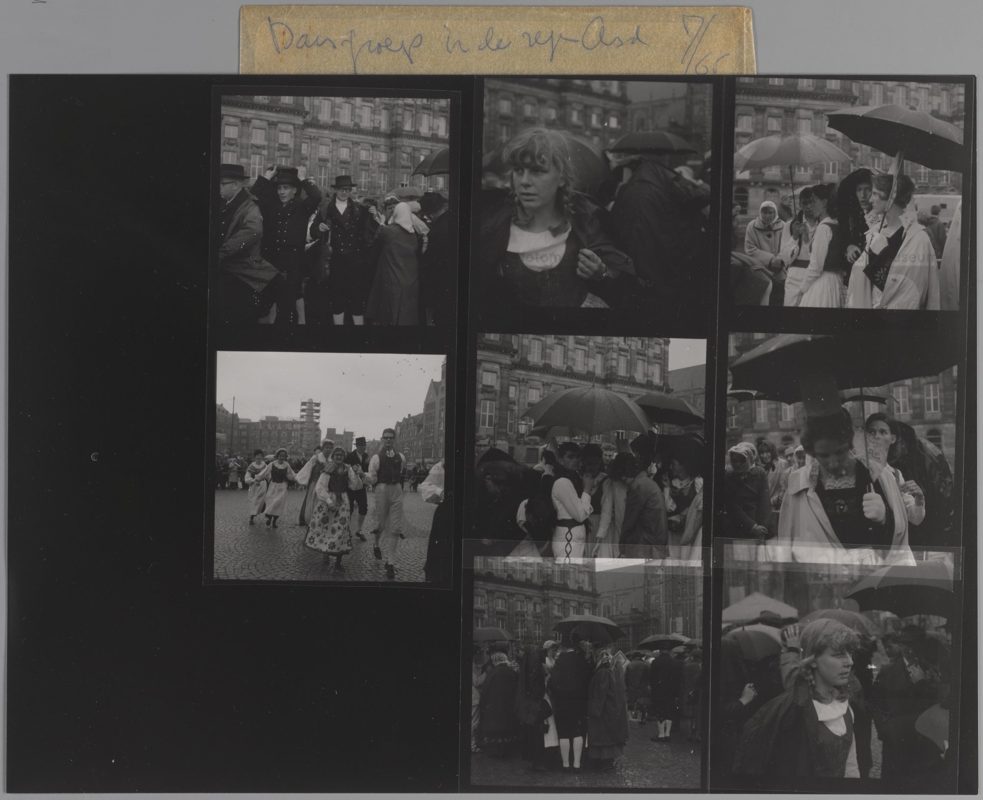 Dansgroep in de regen Dam, Amsterdam
