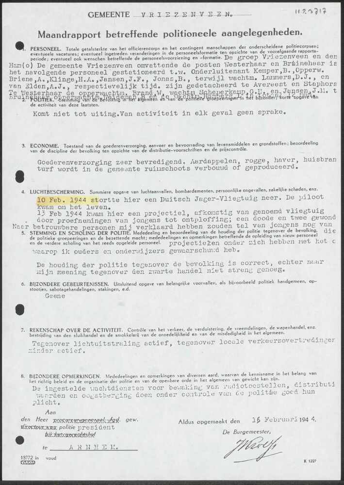 Rapport gemeente Vriezenveen, 16 februari 1944.