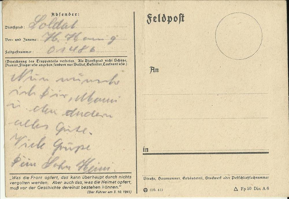 Briefkaart van Heinrich (soldaat) Honig aan Vader Ho...