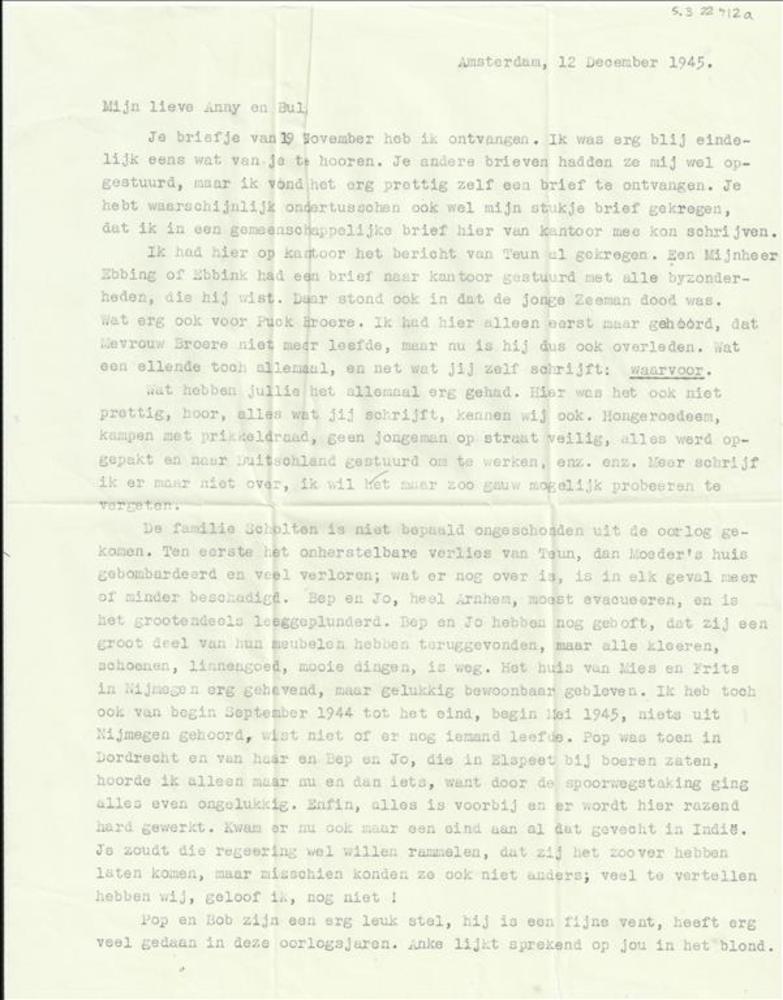 Brief Stien geschreven 12 december 1945 aan Annie en...
