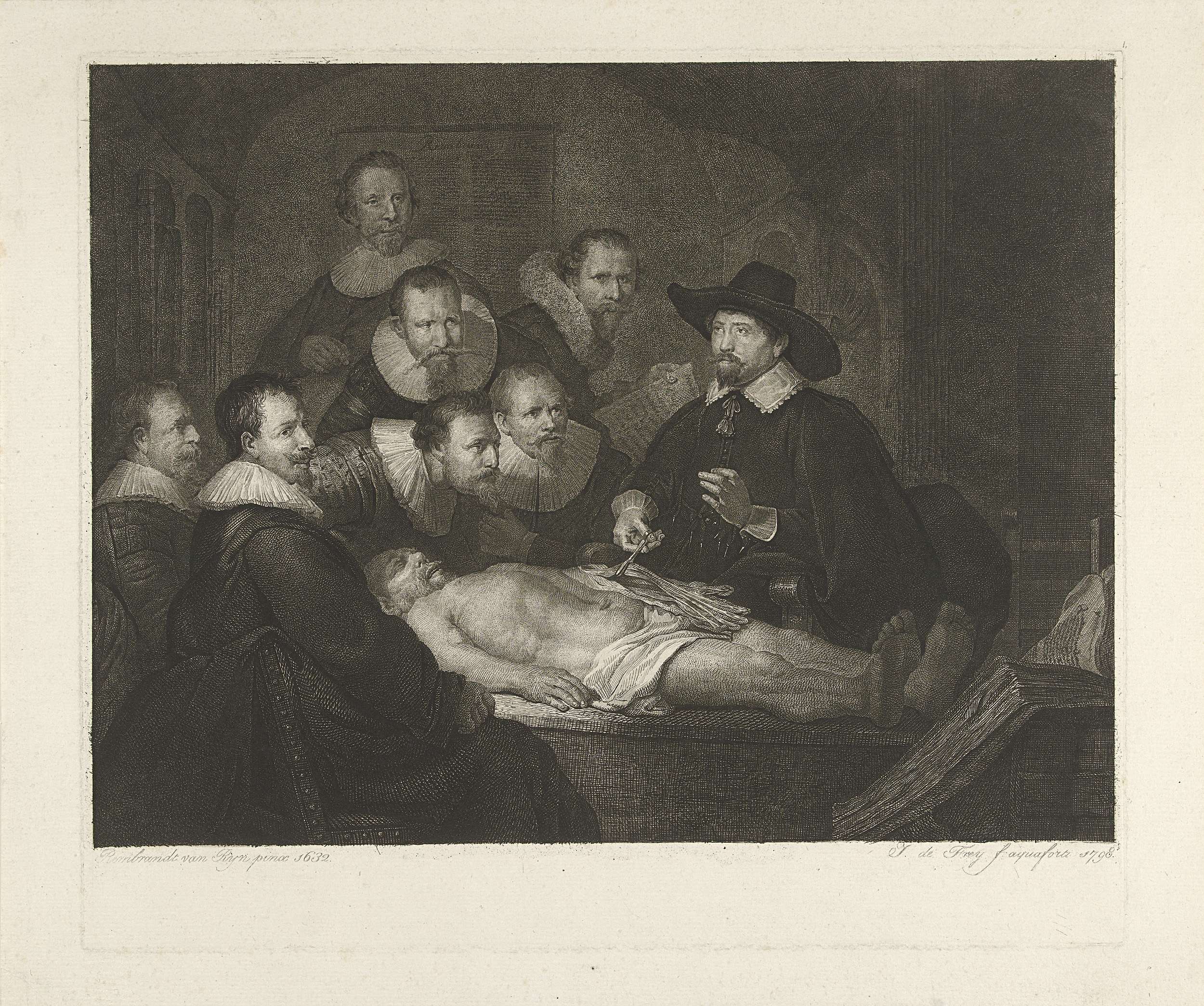 Verklarende prent bij De anatomische les van Dr. Nic...