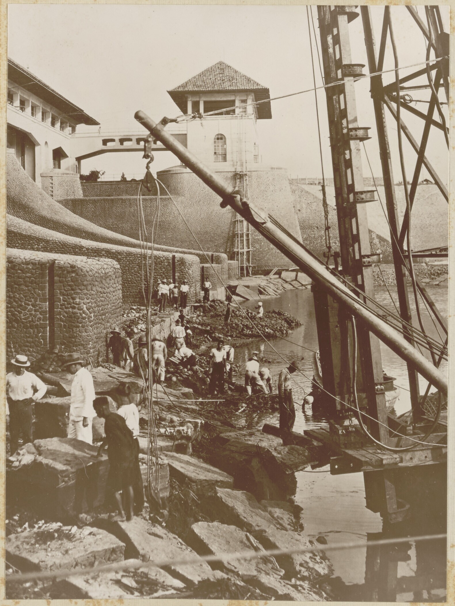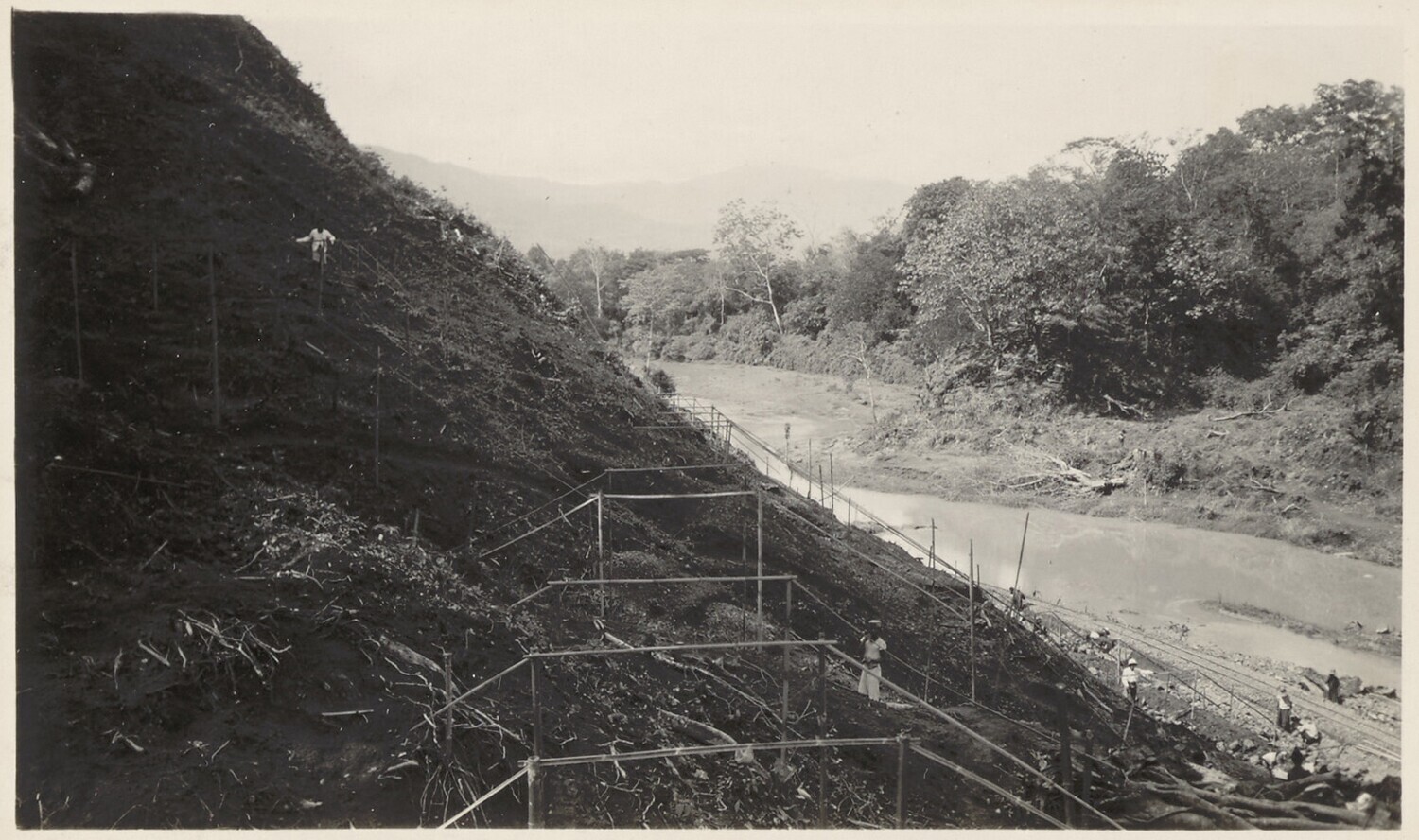 Opruiming van taludsafschuiving bij Gunung Tengah