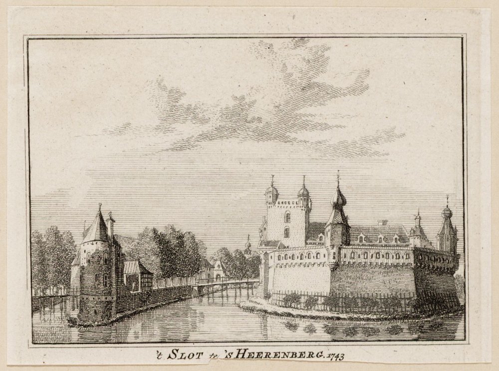 Prent "Kerk en kasteel te 's-Heerenberg. 1743" op pa...
