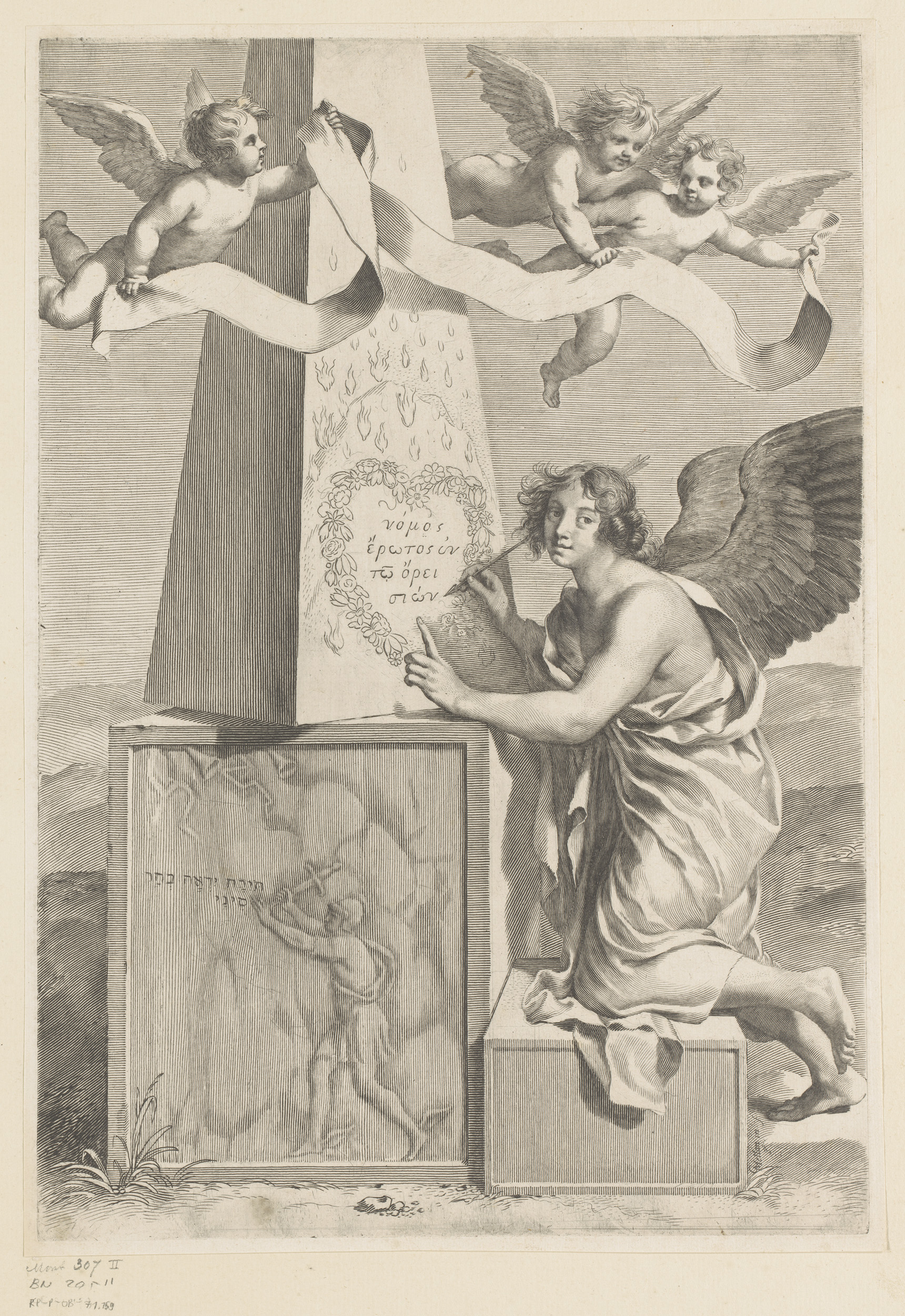 Ornamentele cartouche met cherubijn en fruit