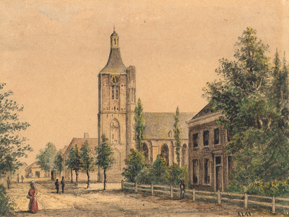 Hervormde Kerk met pastorie op Raadhuisplein aan de ...