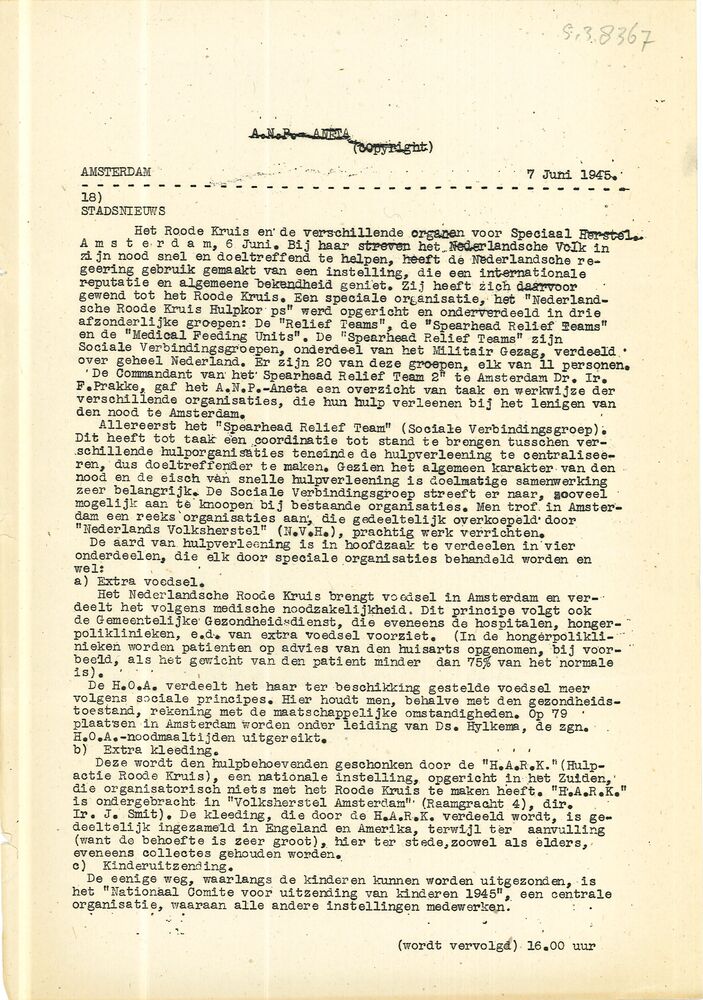 Algemeen Nederlandsch Persbureau, mededelingen, kant...