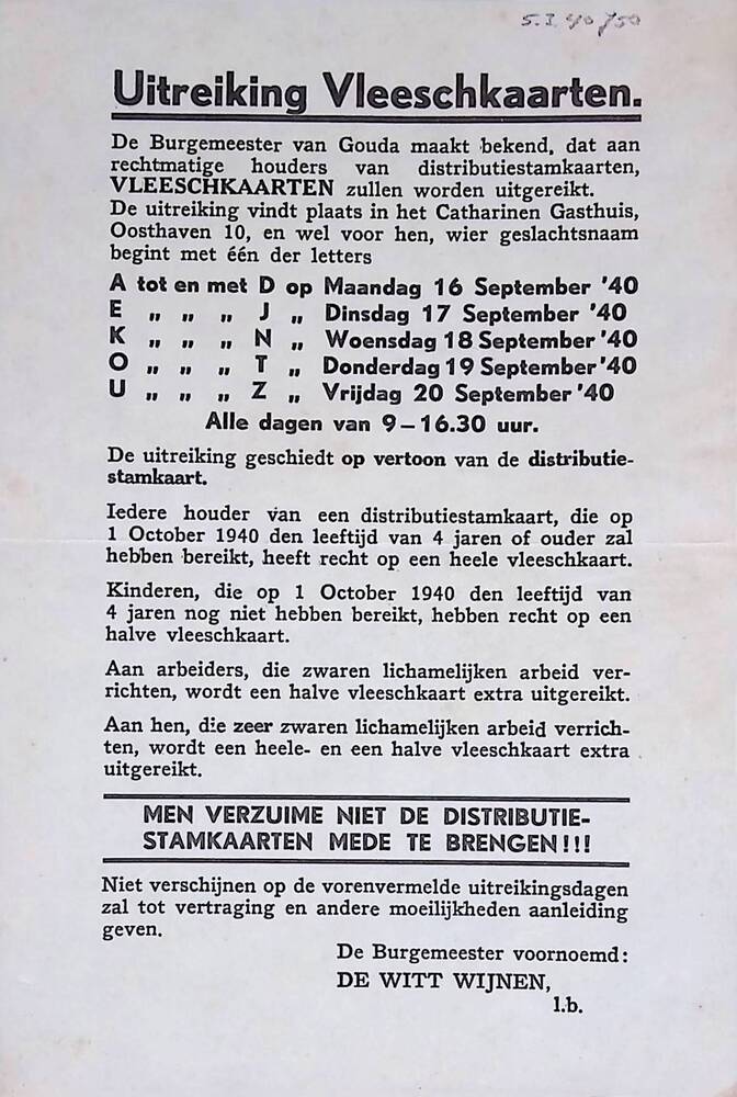 Uitreiking, Vleeschkaarten.