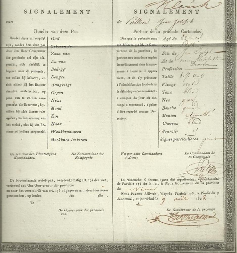 Verlofpas Nationale Militie - Jean J. Collin