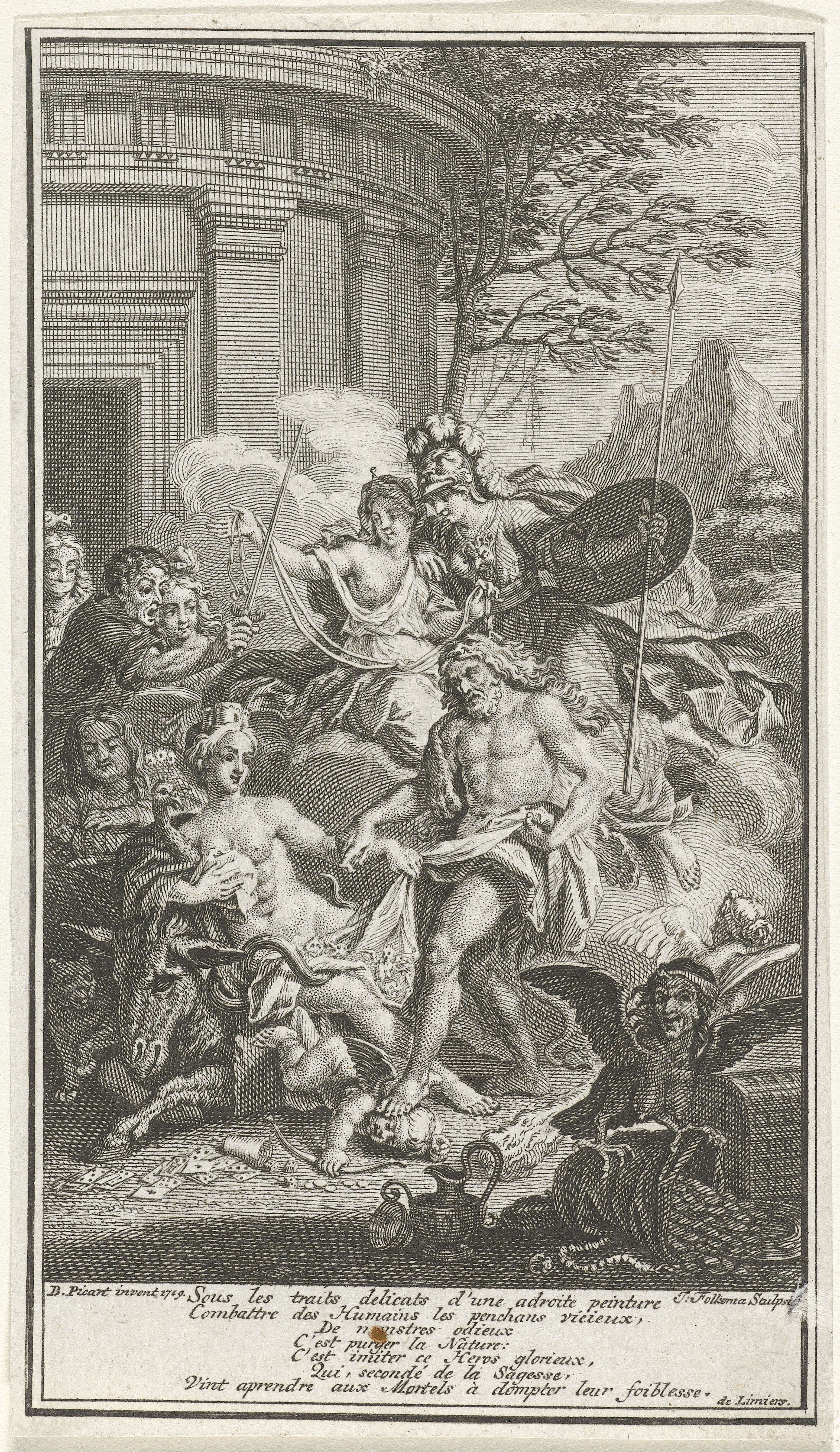 Allegorische voorstelling met Hercules die Amor vert...