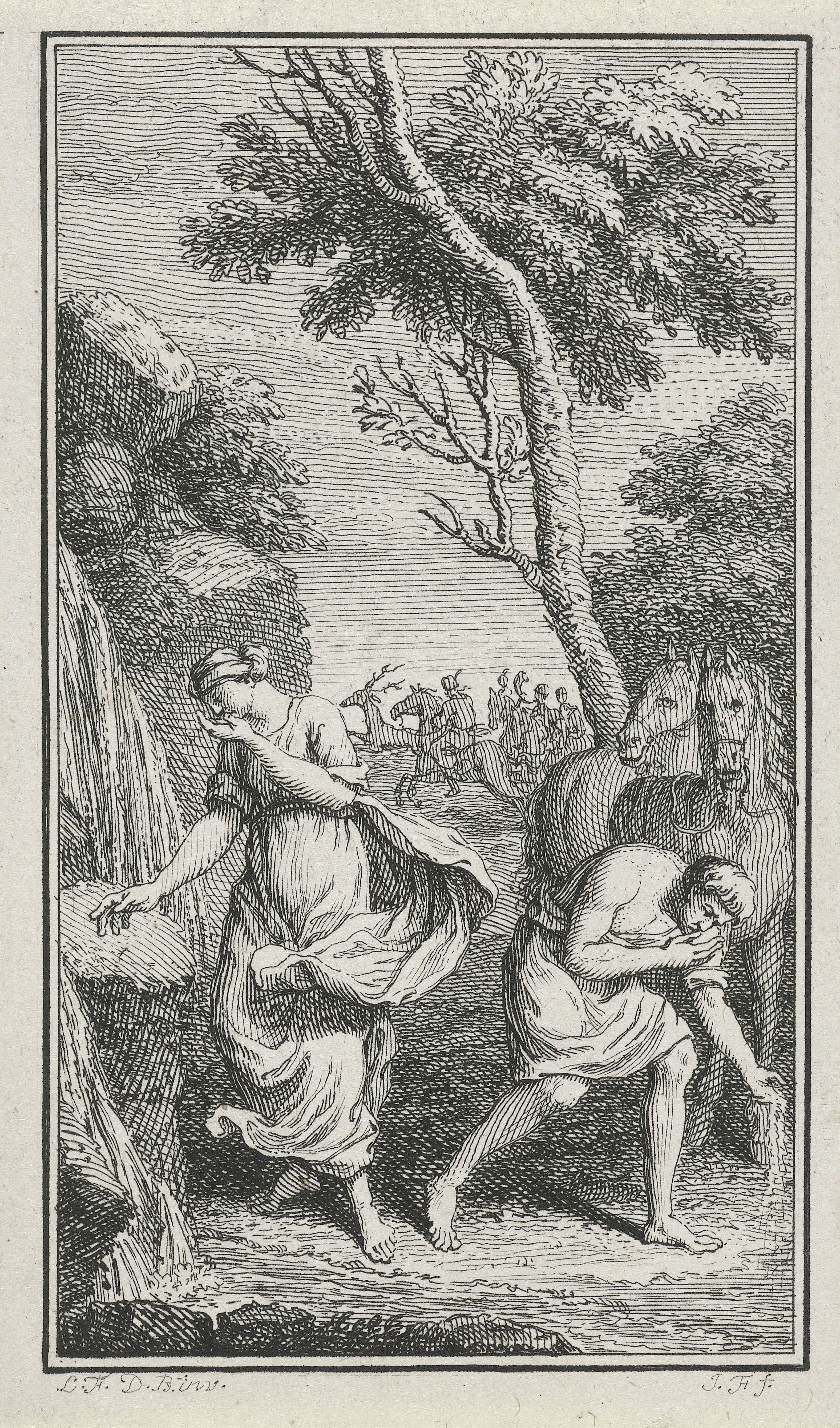 Twee figuren bij een beek