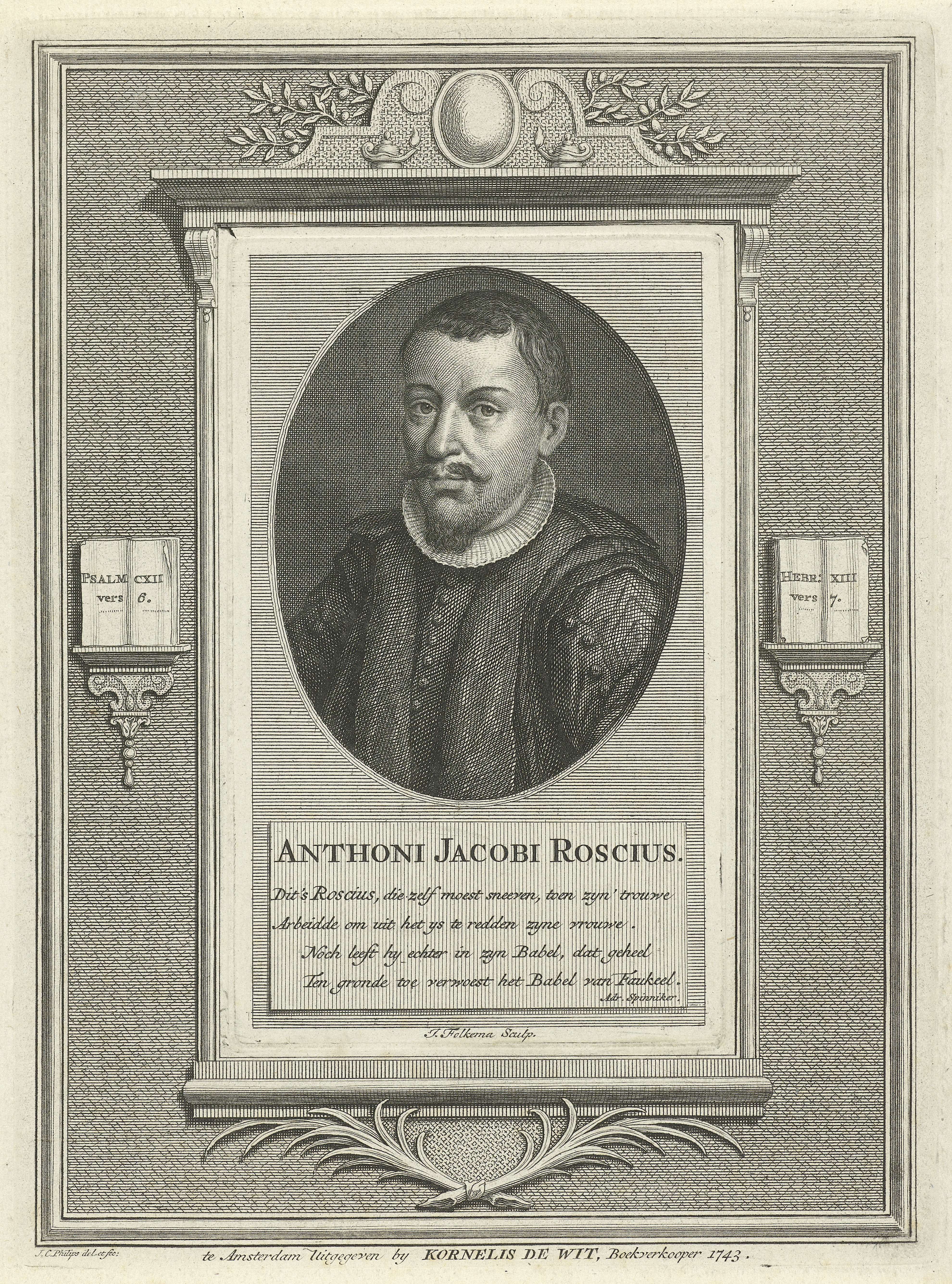 Portret van Anthoni Jacobi Roscius