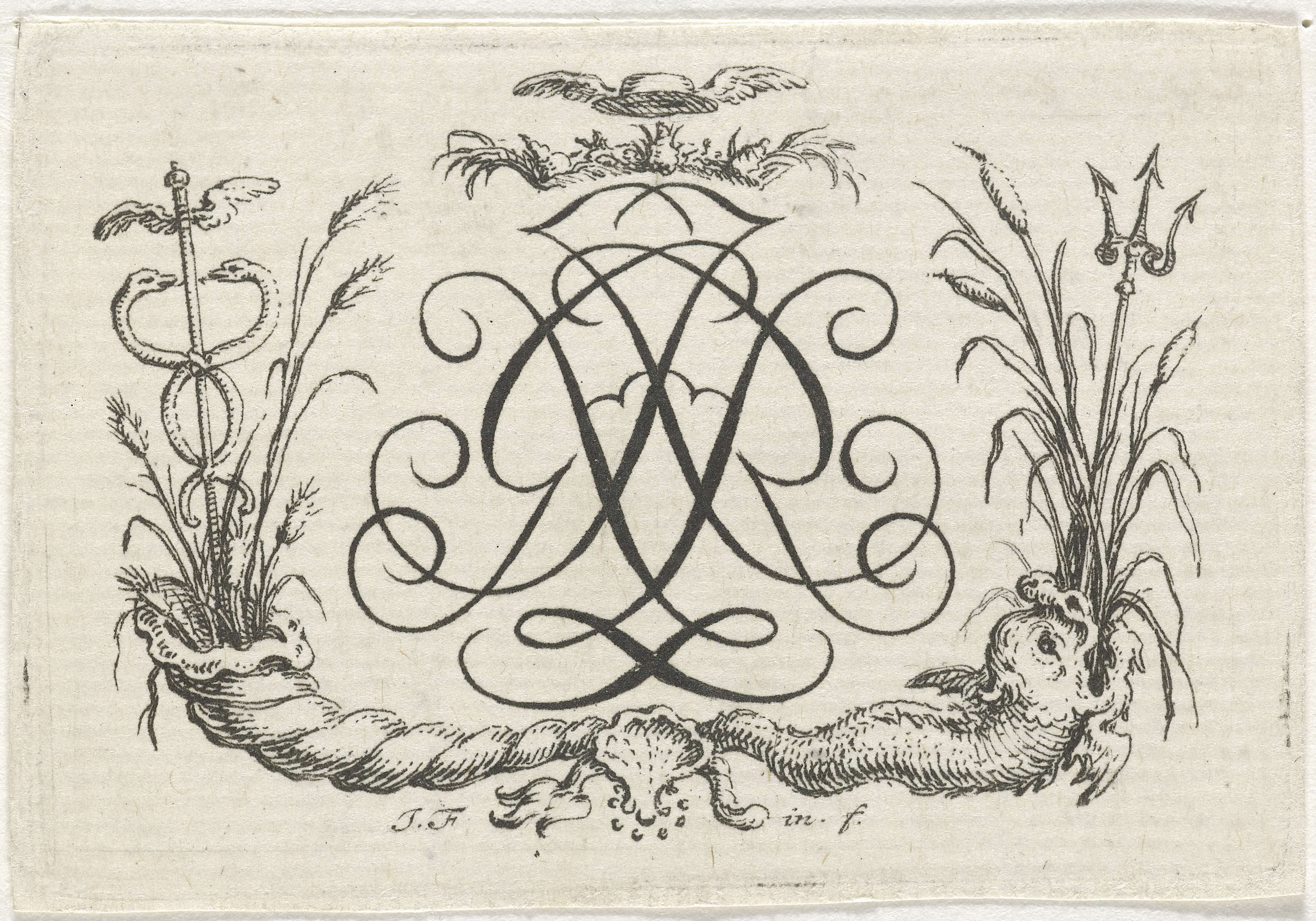 Vignet met caduceus en drietand