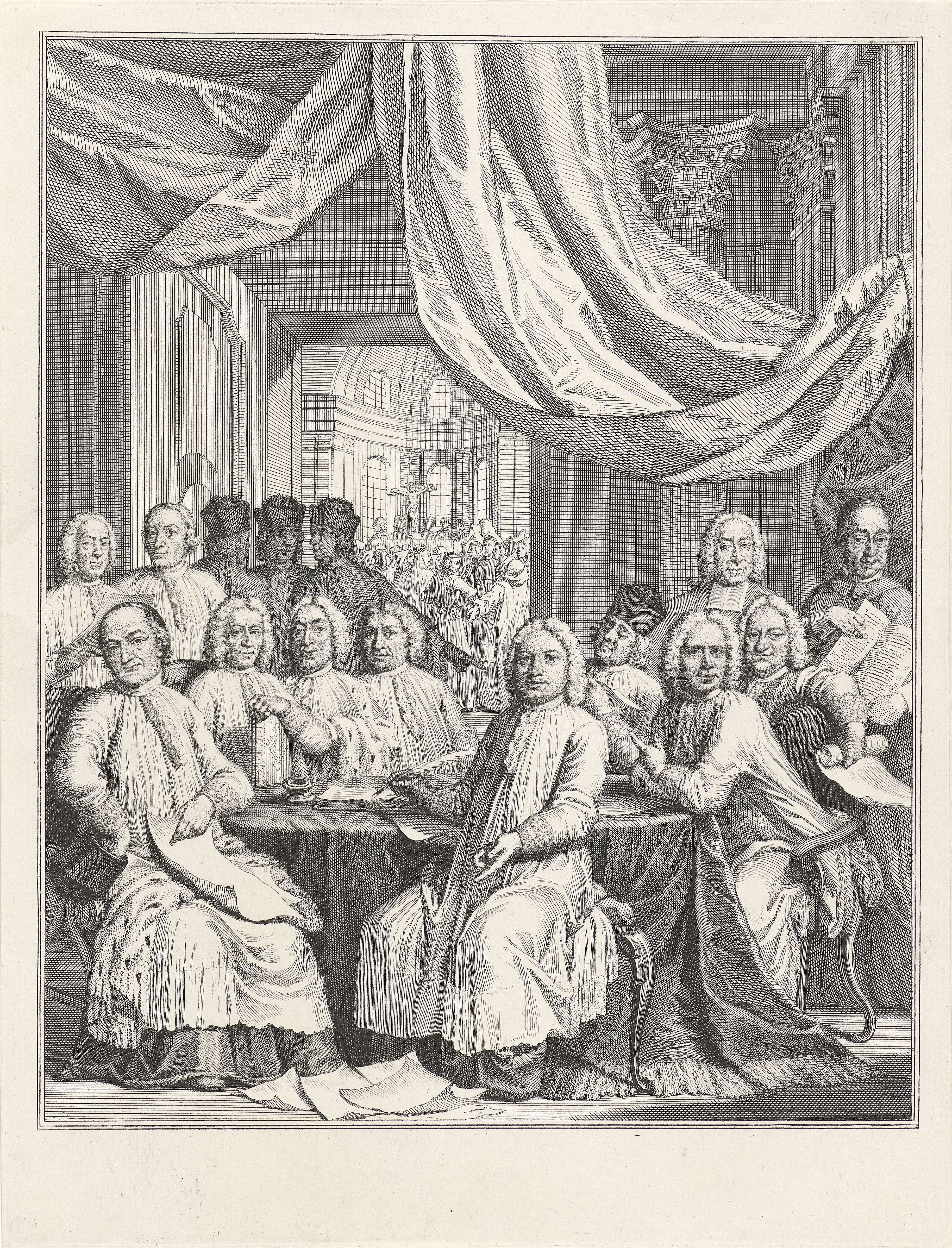 Gezelschap van geestelijken rond een tafel
