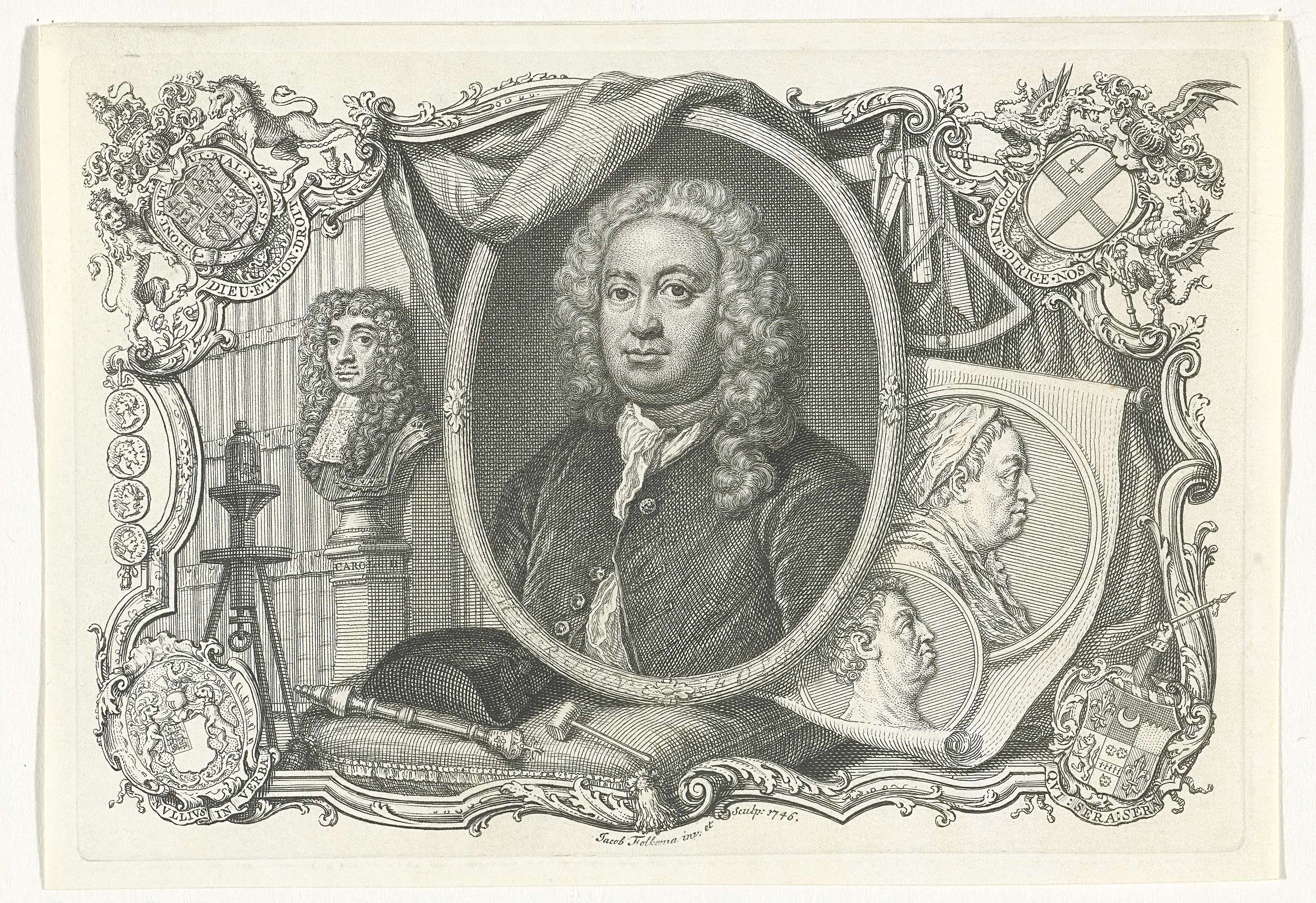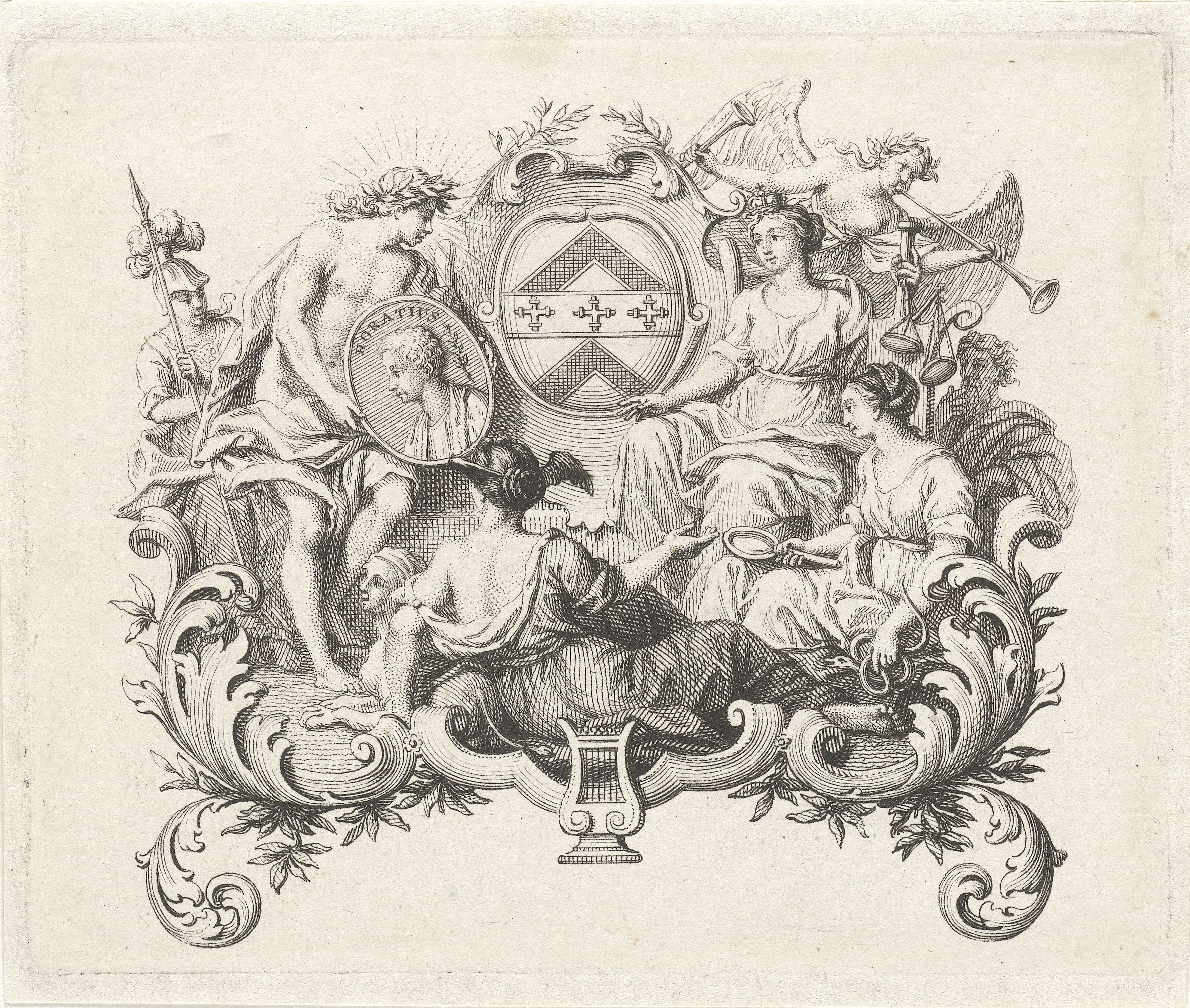 Cartouche met portretmedaillon van Horatius