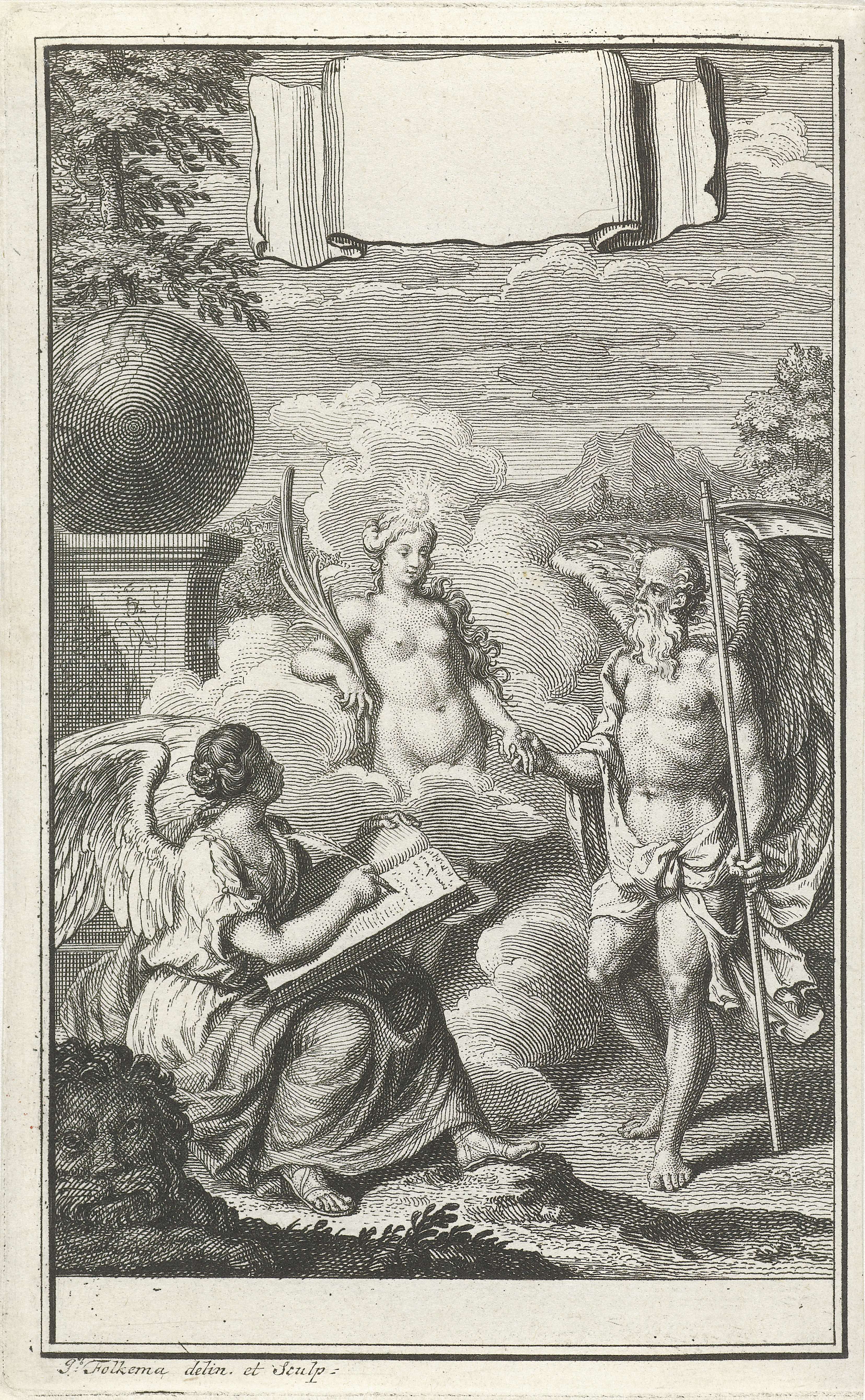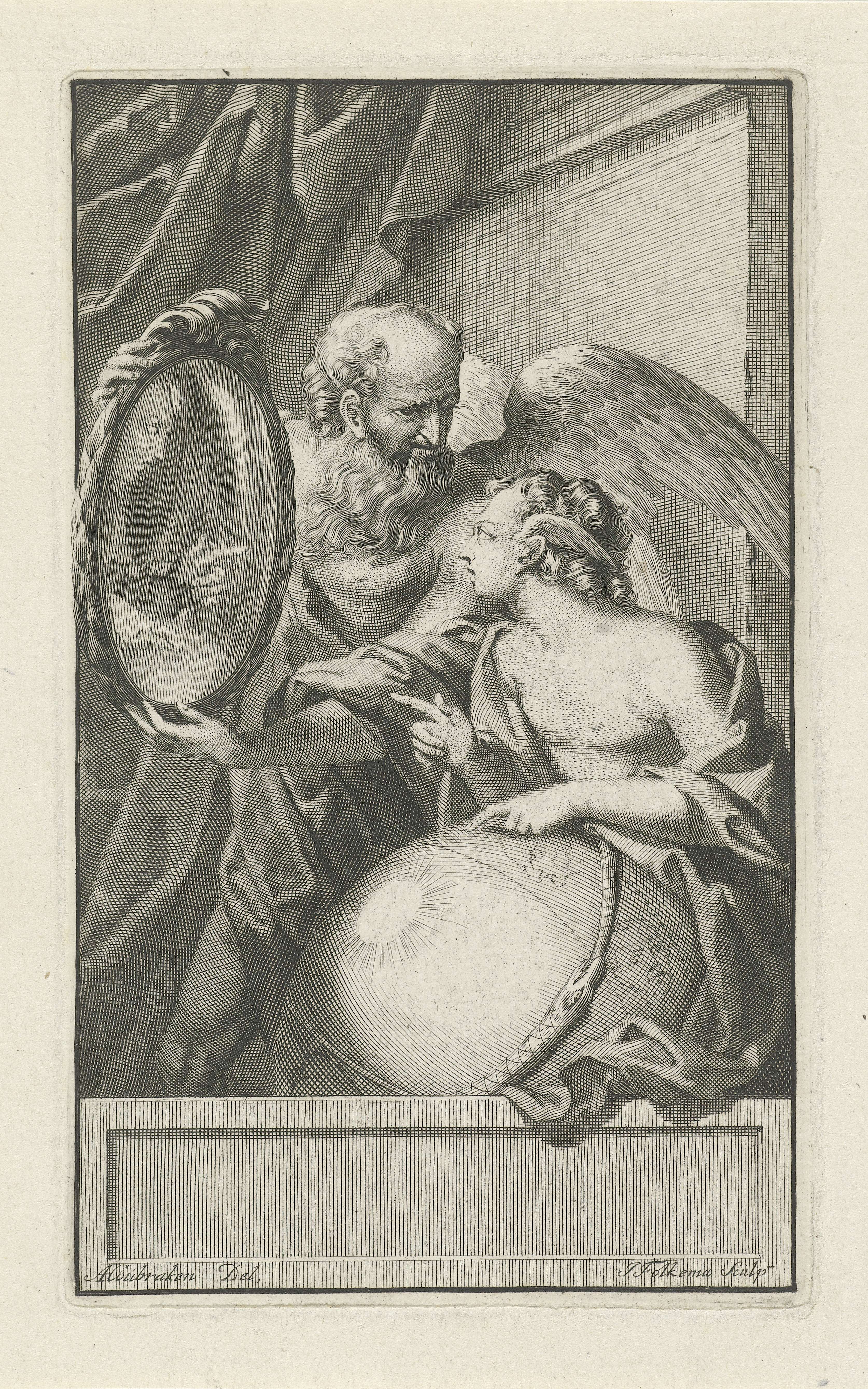 Allegorische voorstelling met Urania en Vader Tijd