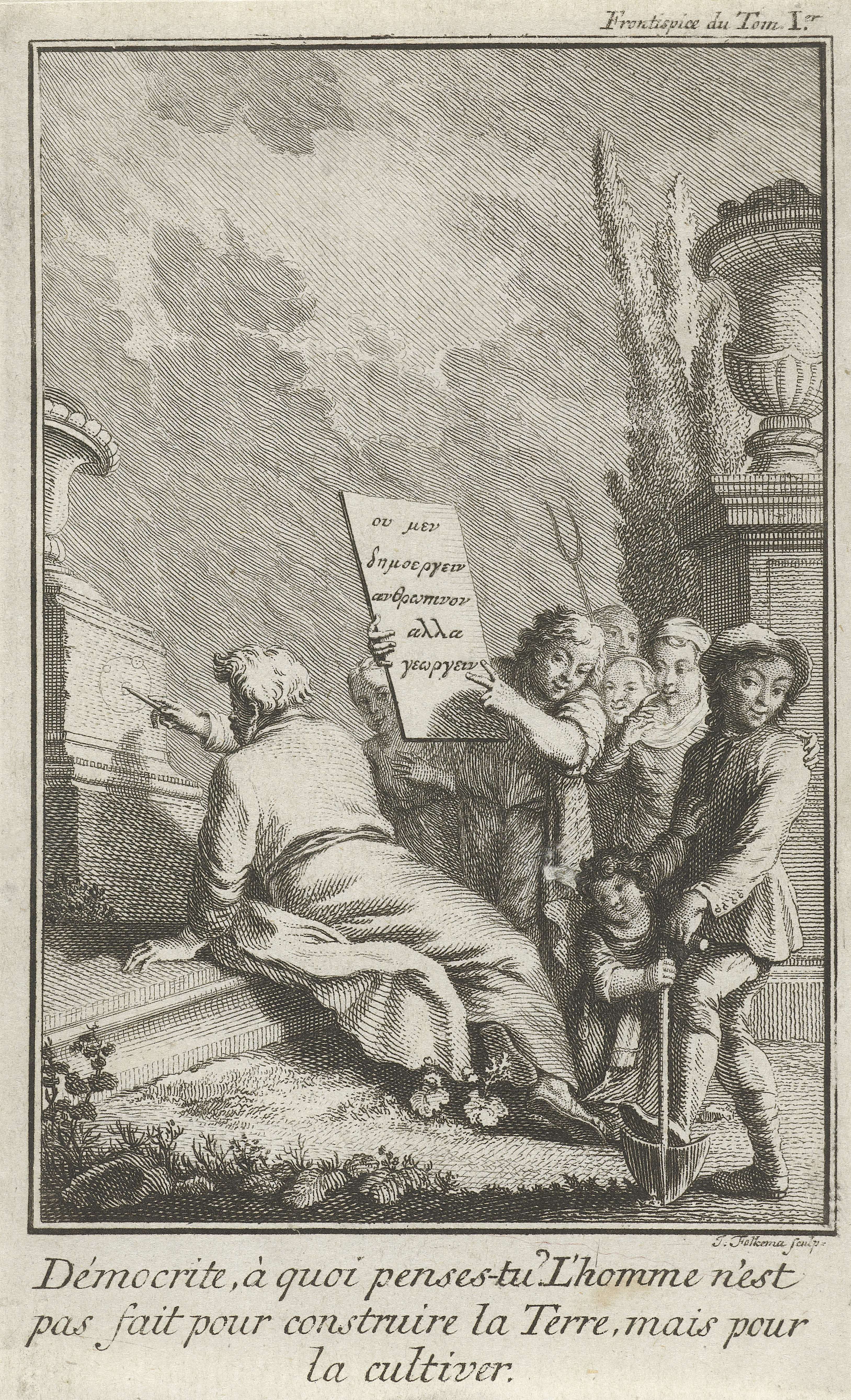 Democritus kerft een wiskundig model in een sokkel