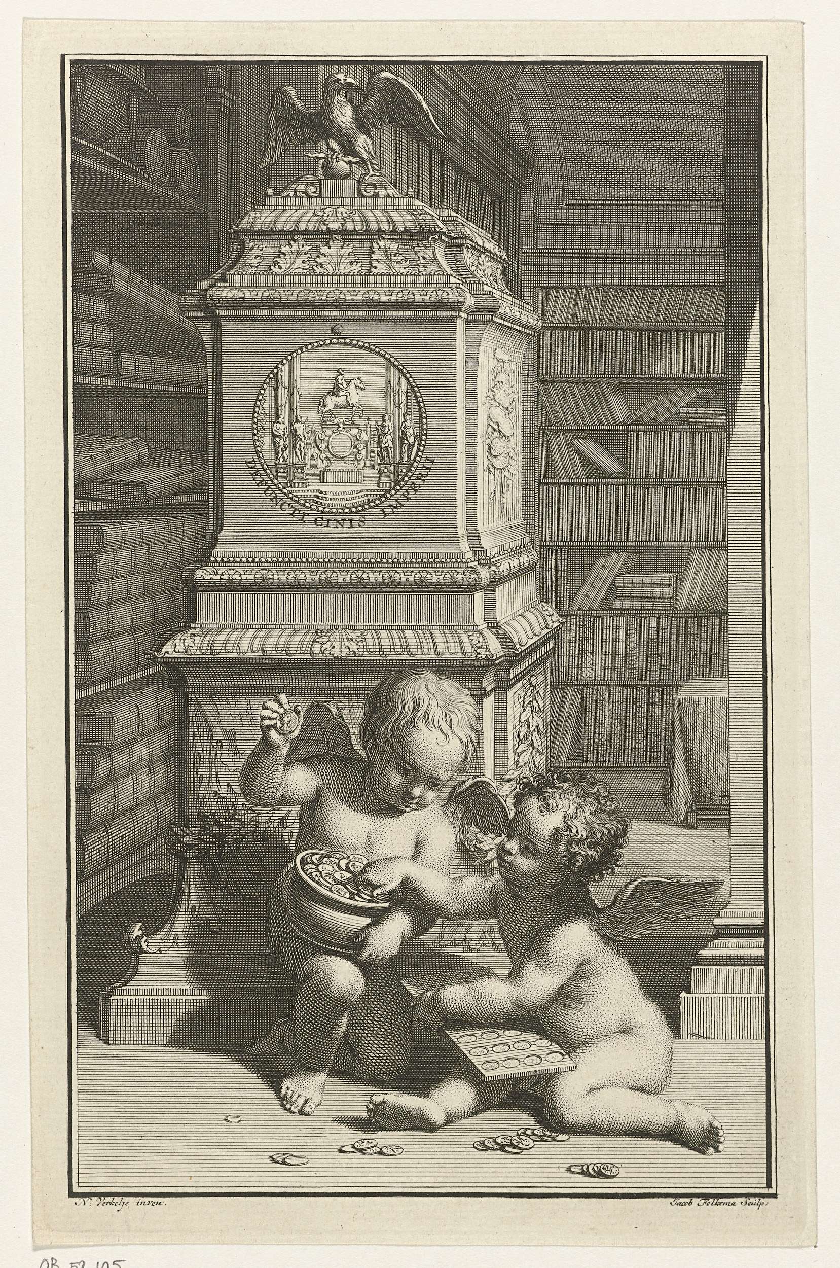 Twee putti in een bibliotheek