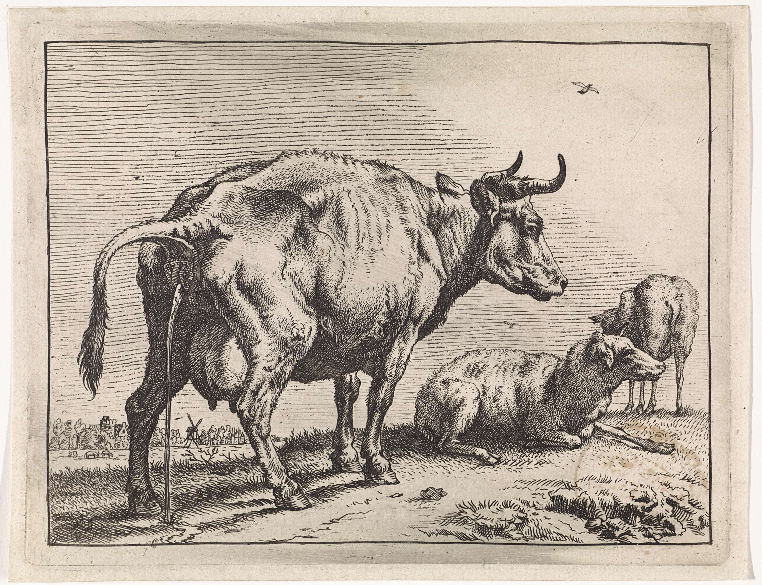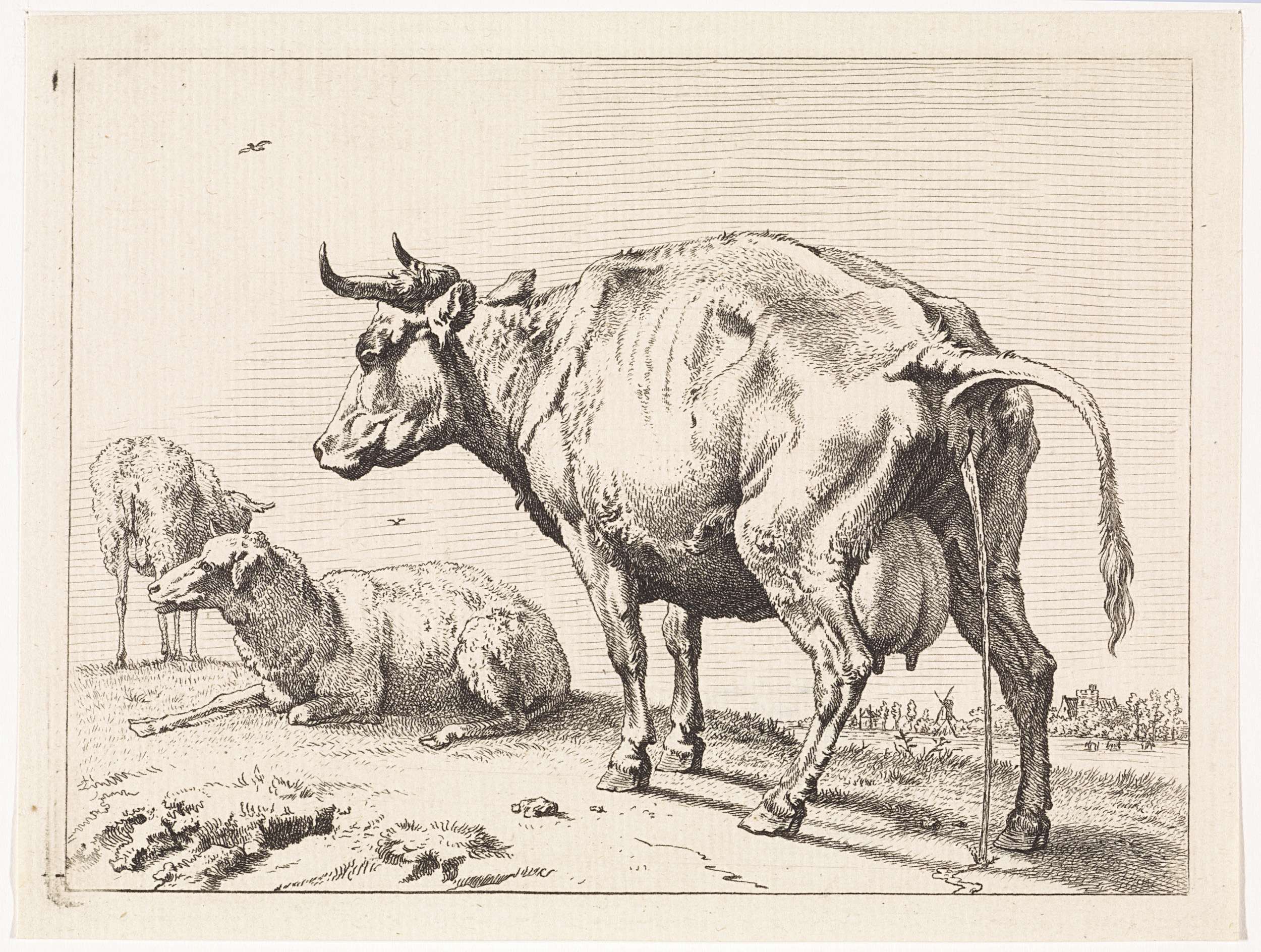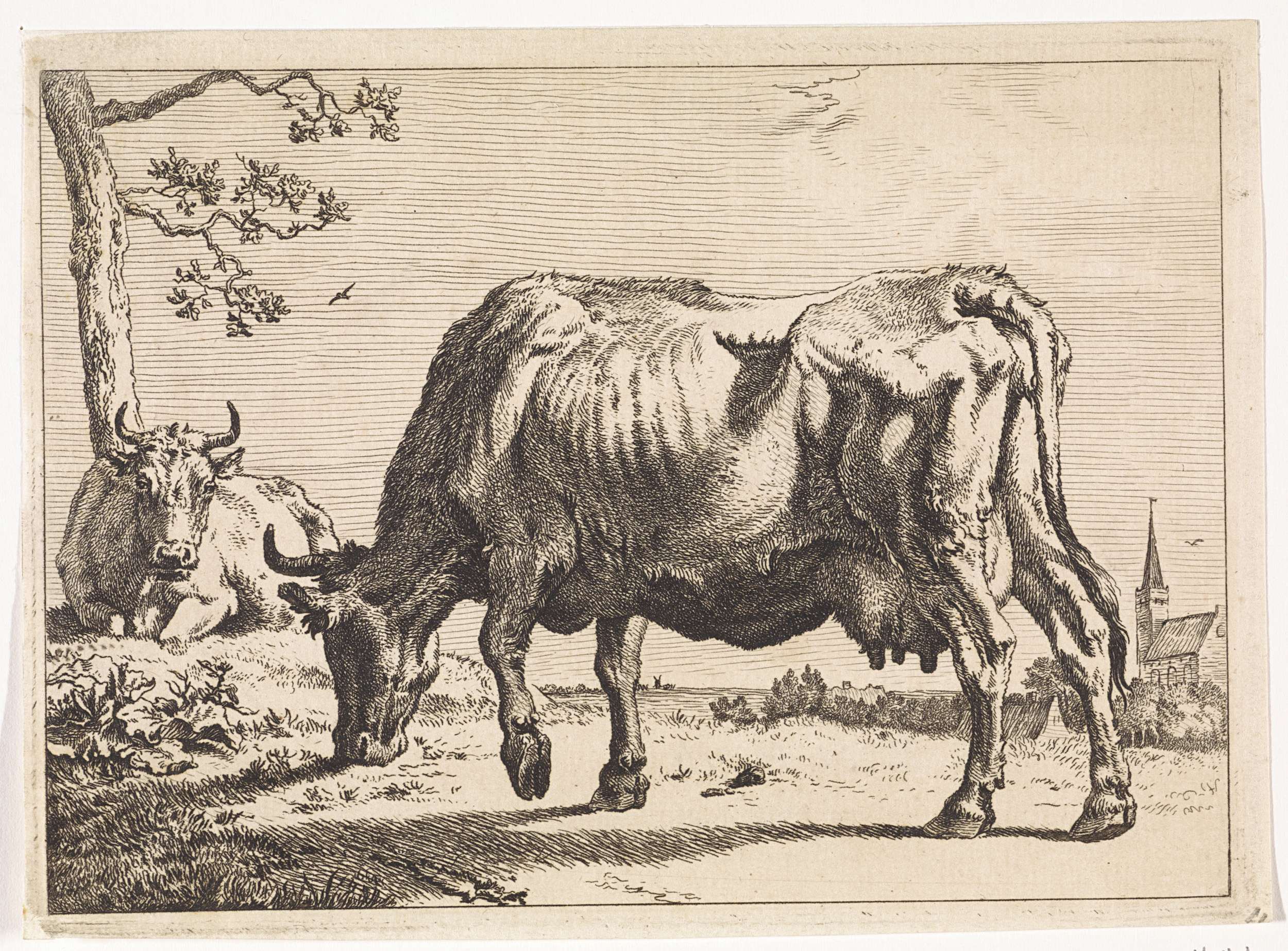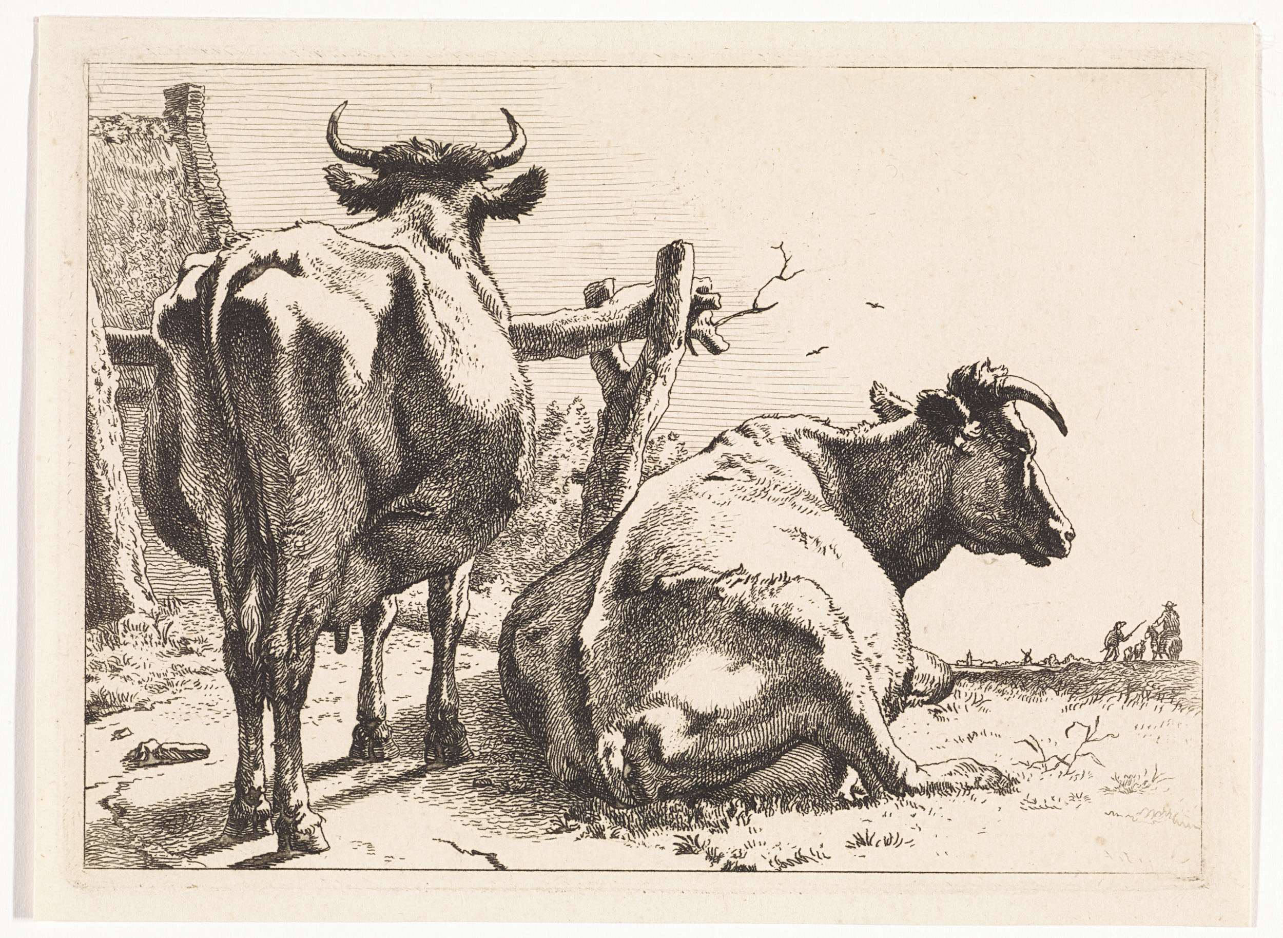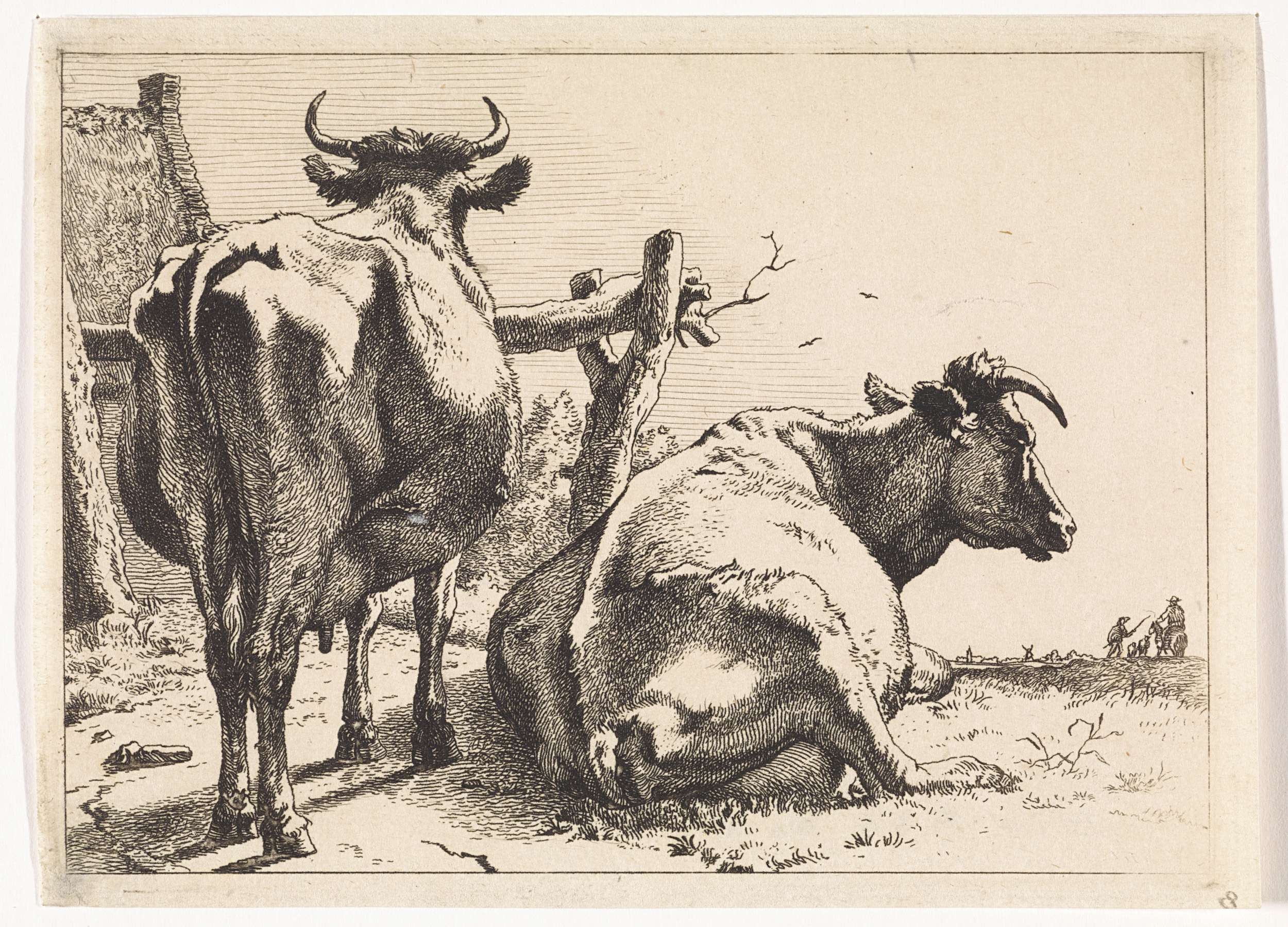 Een staande en een liggende koe