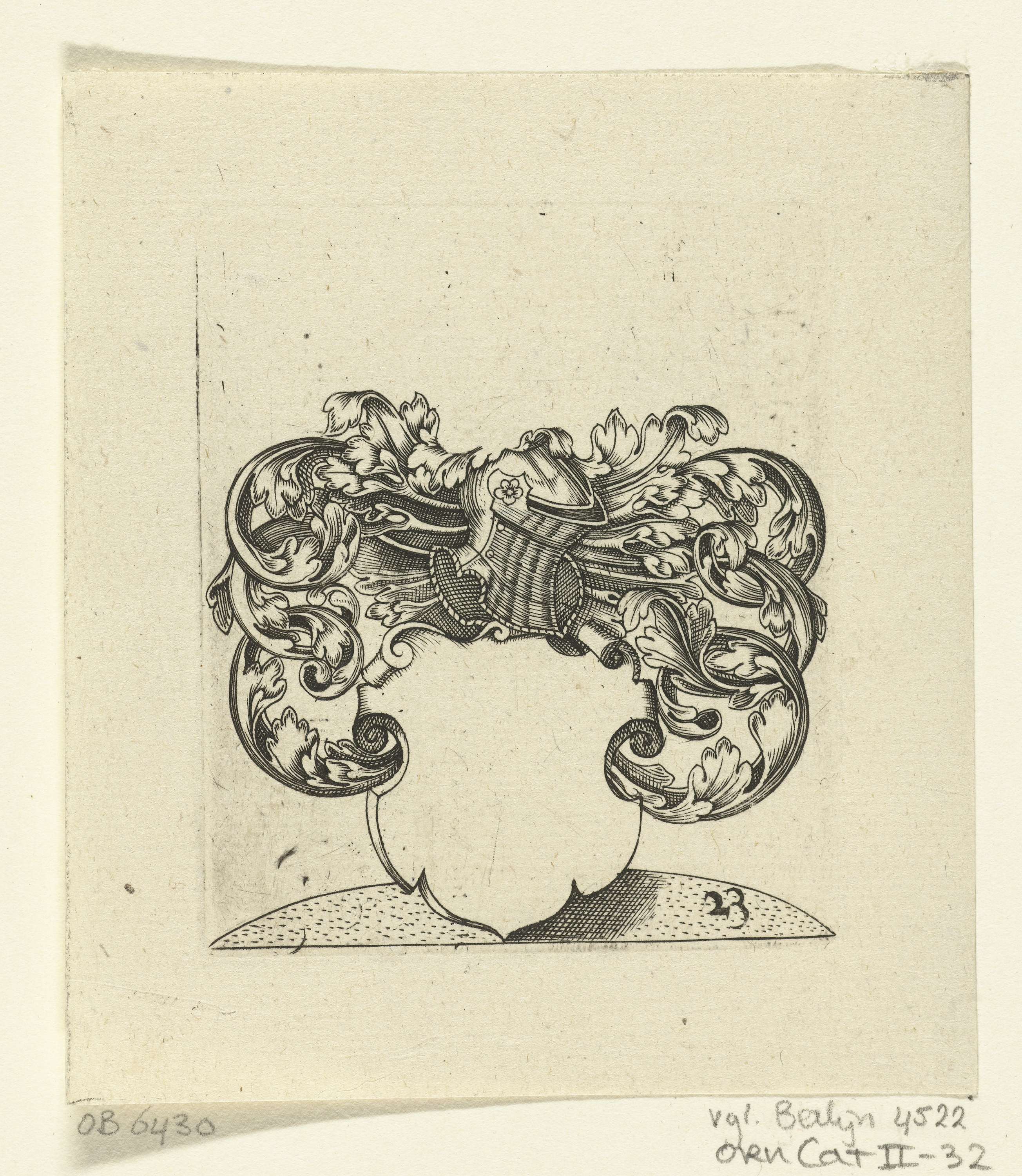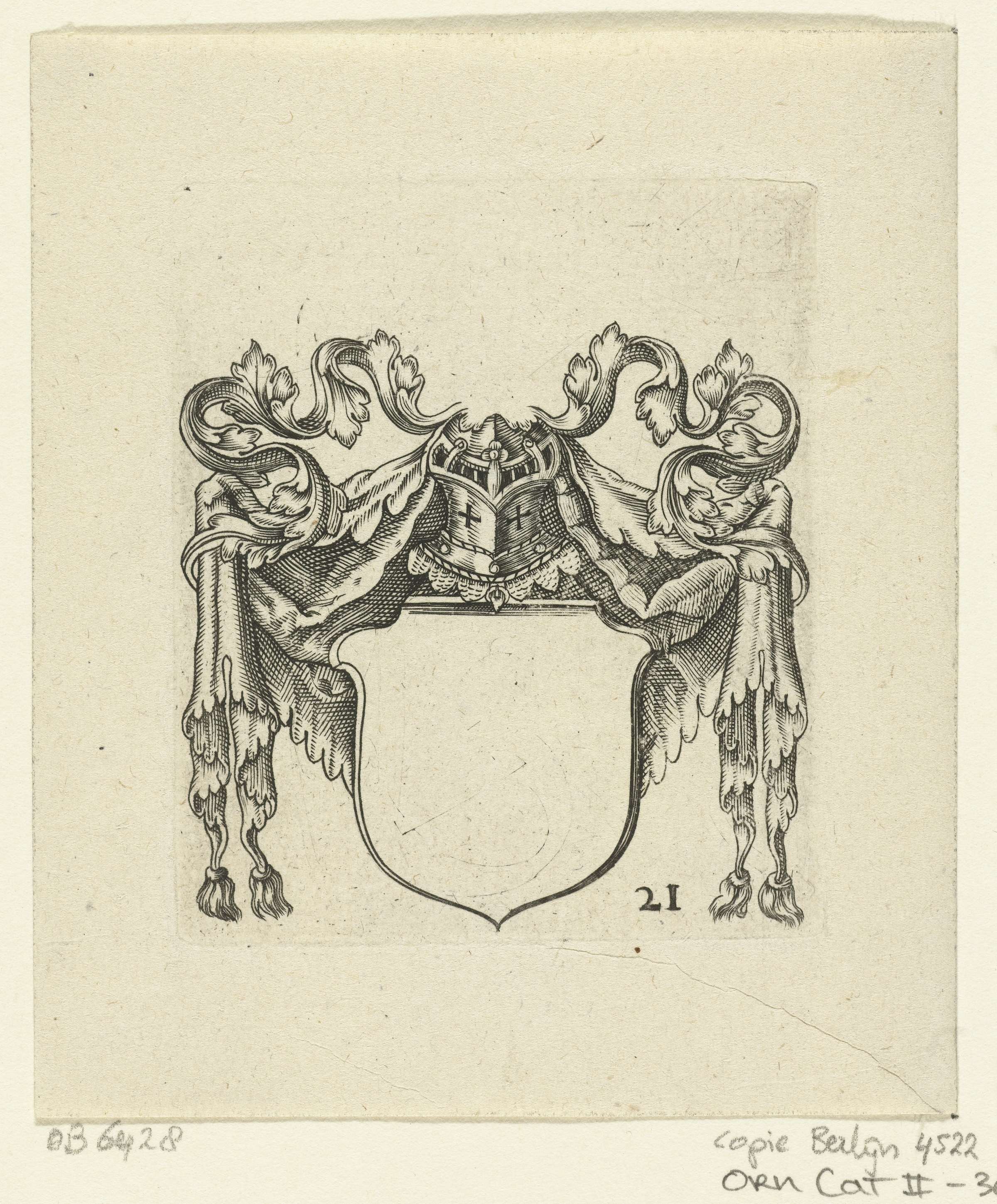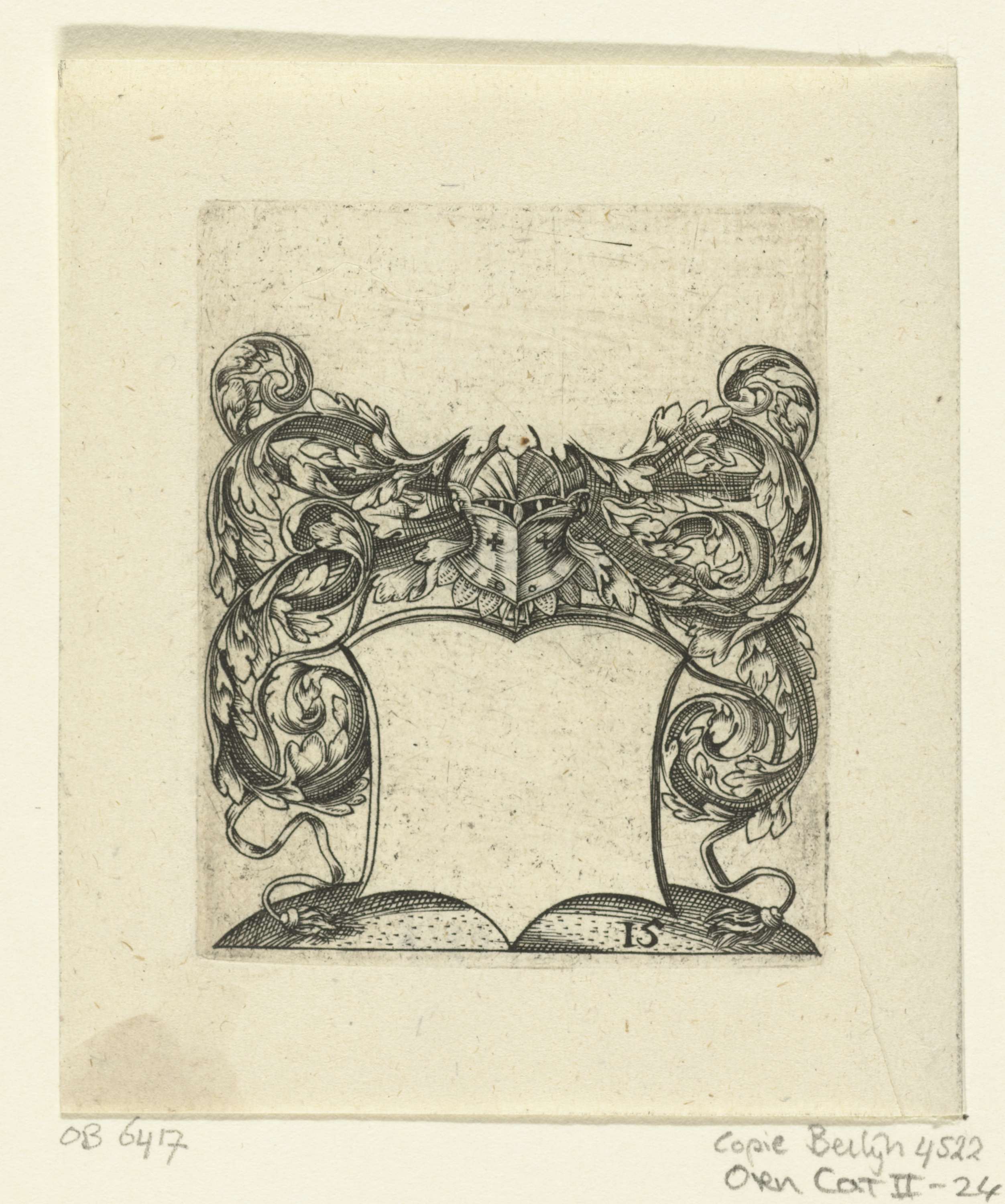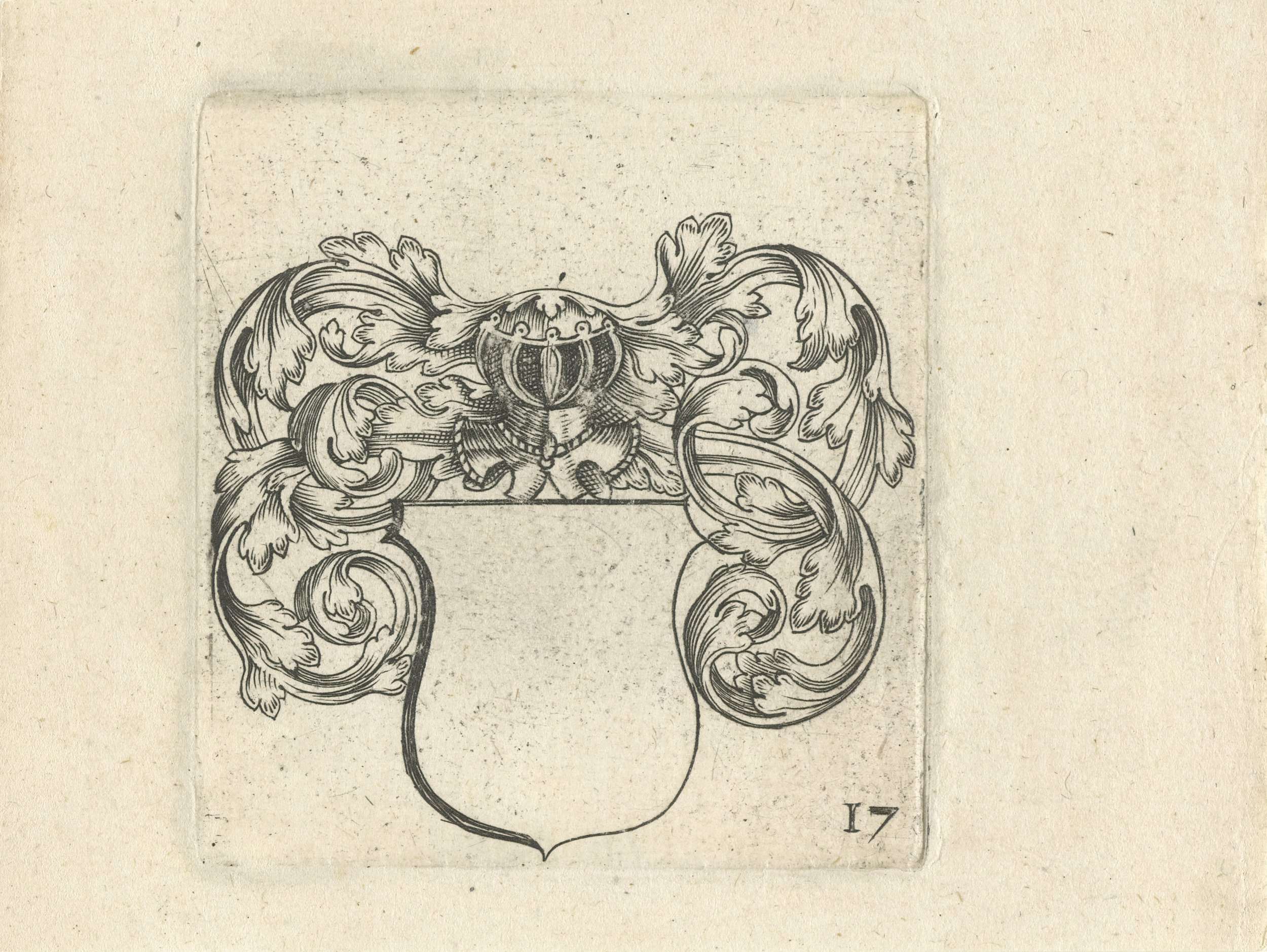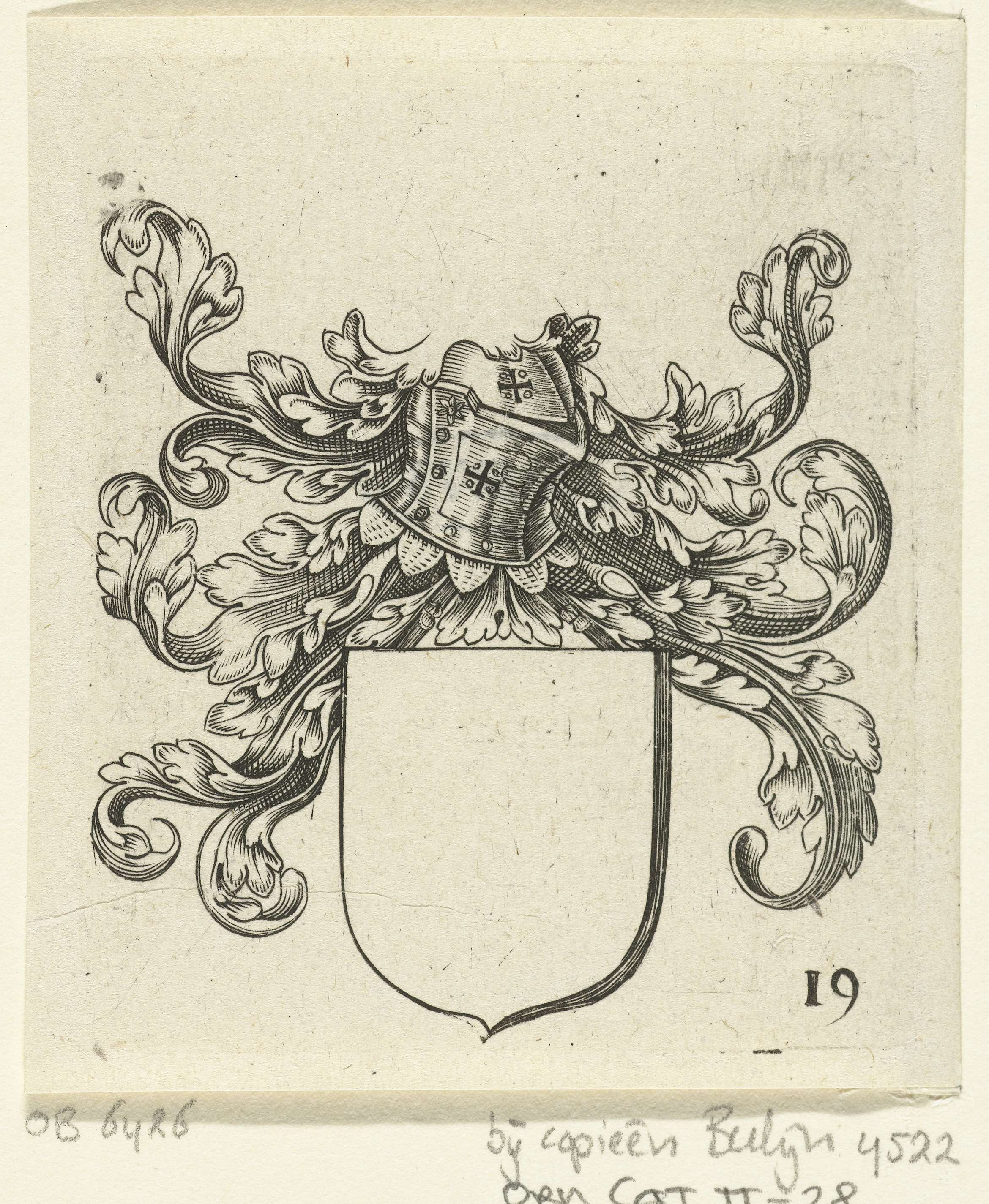 Wapenschild met helm en bladranken