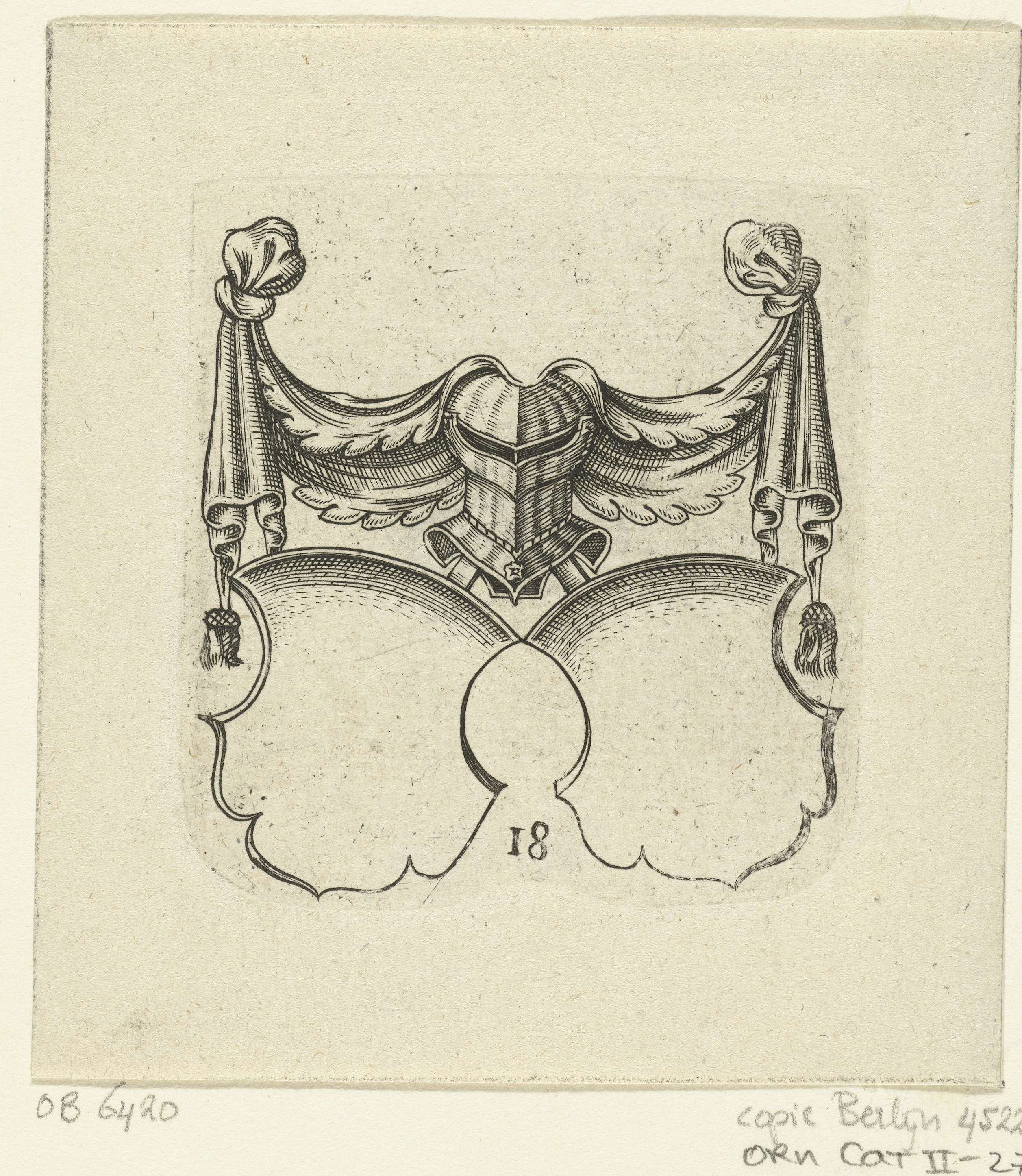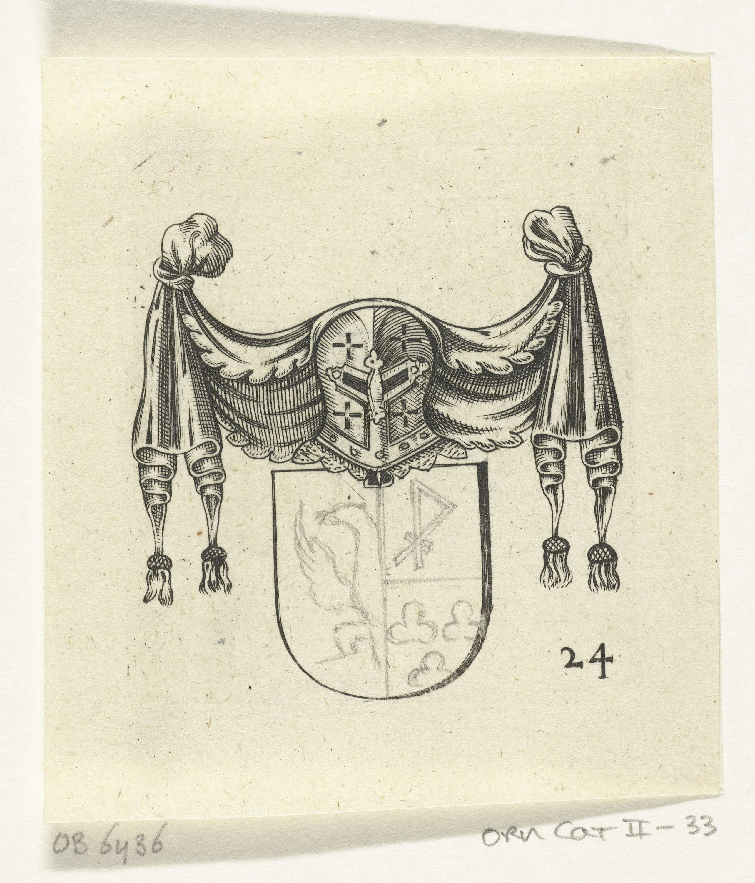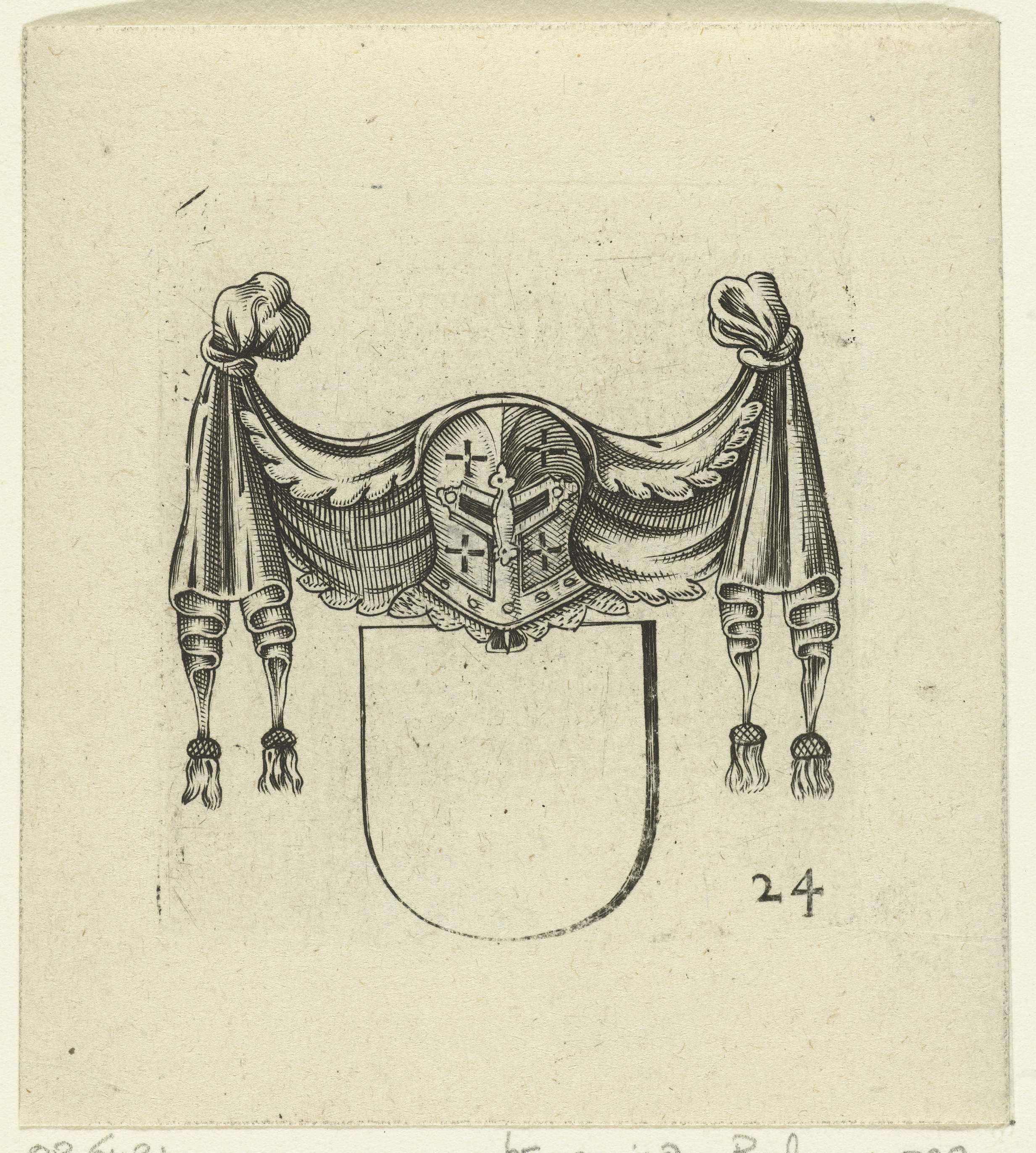 Wapenschild bekroond met helm onder een draperie