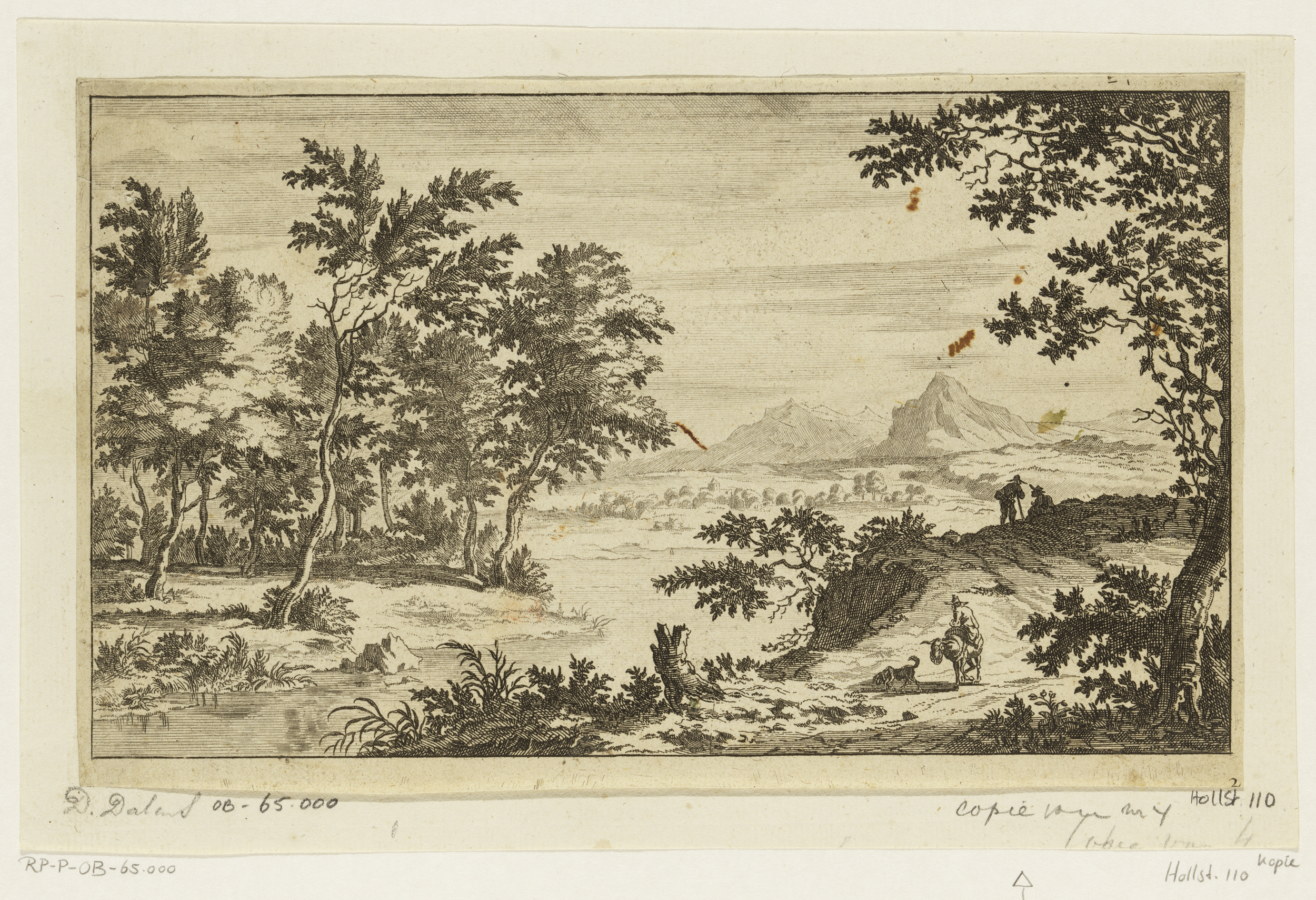 Landschap met man op ezel