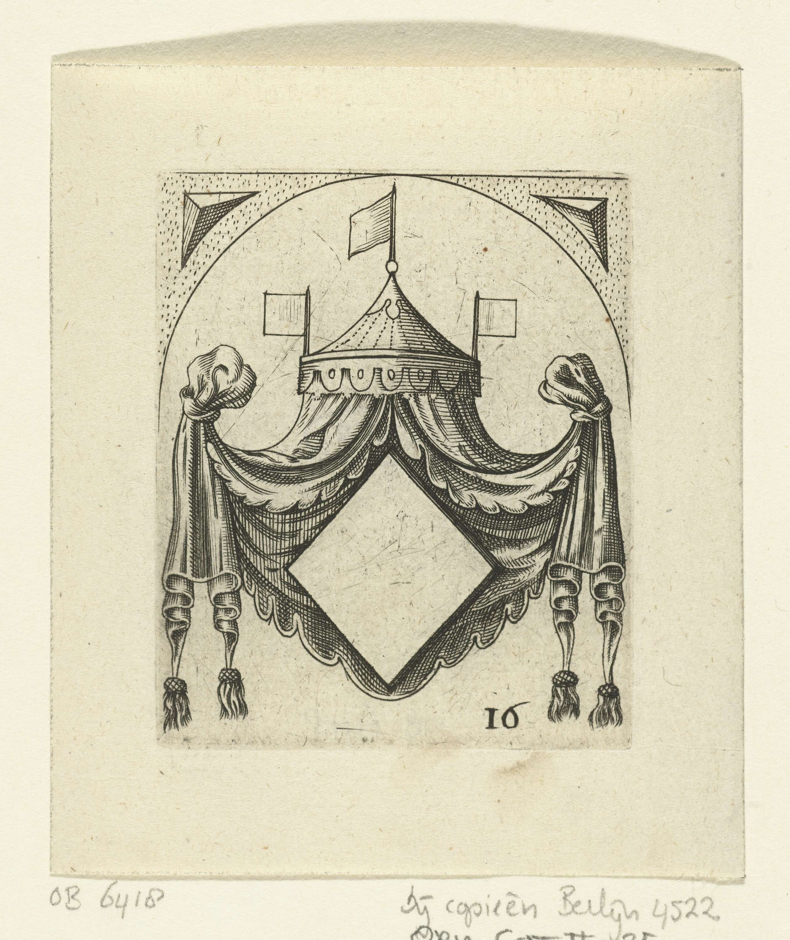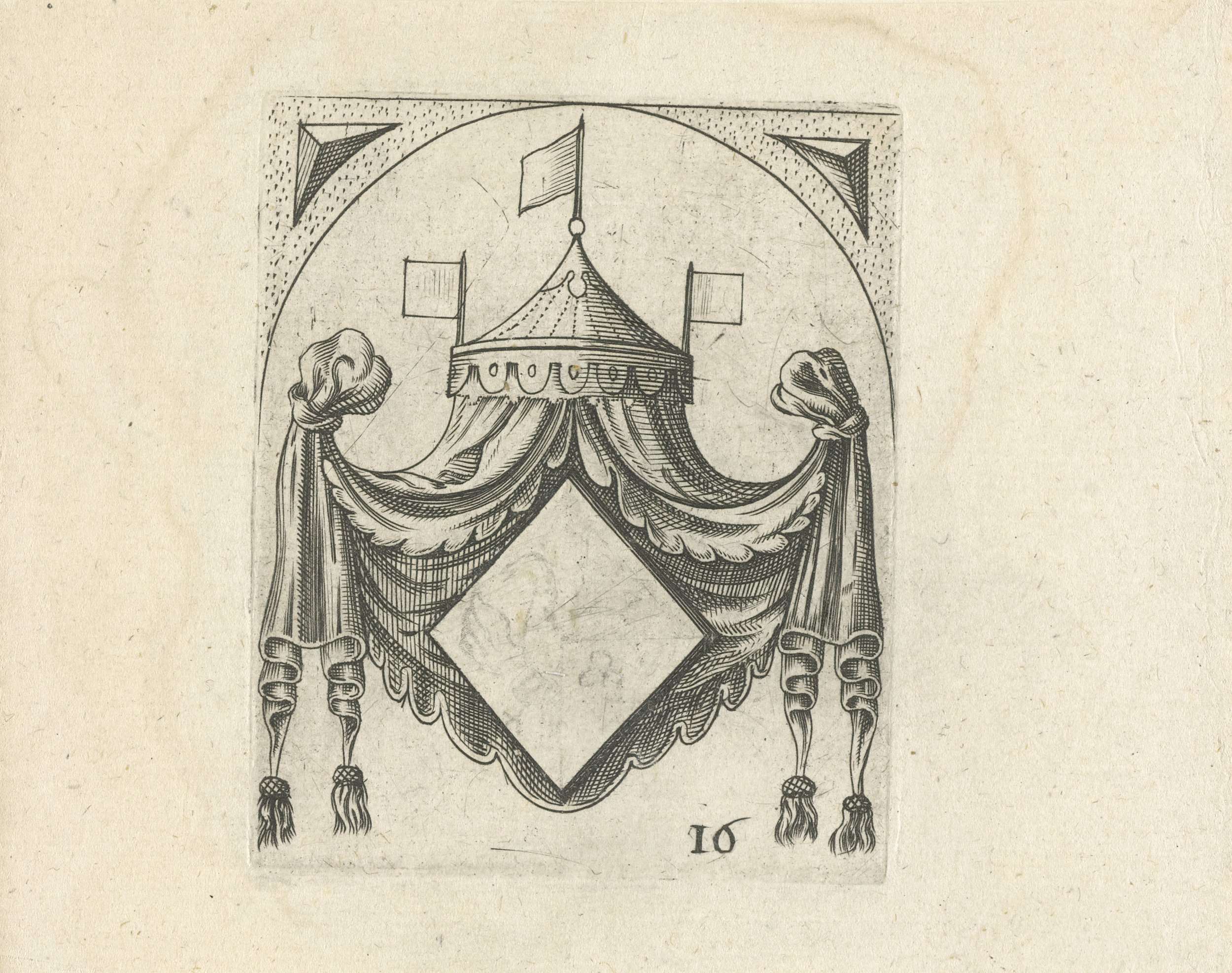 Wapenschild met ruit onder baldakijn
