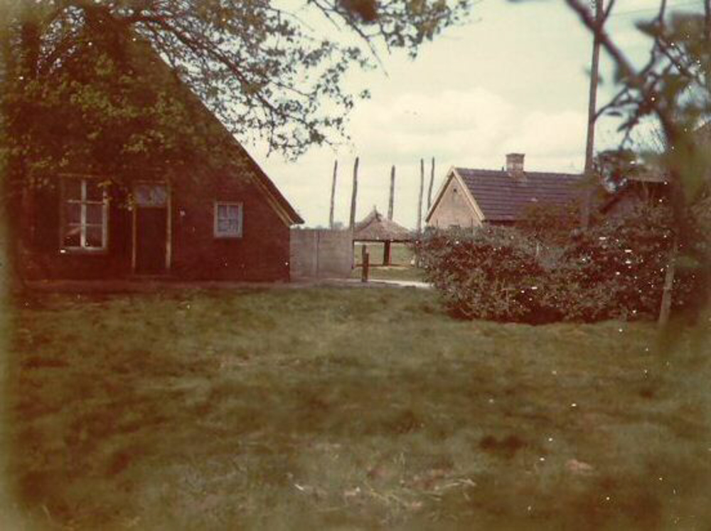 Op de Veluwe. Boerenerf met schaapskudde