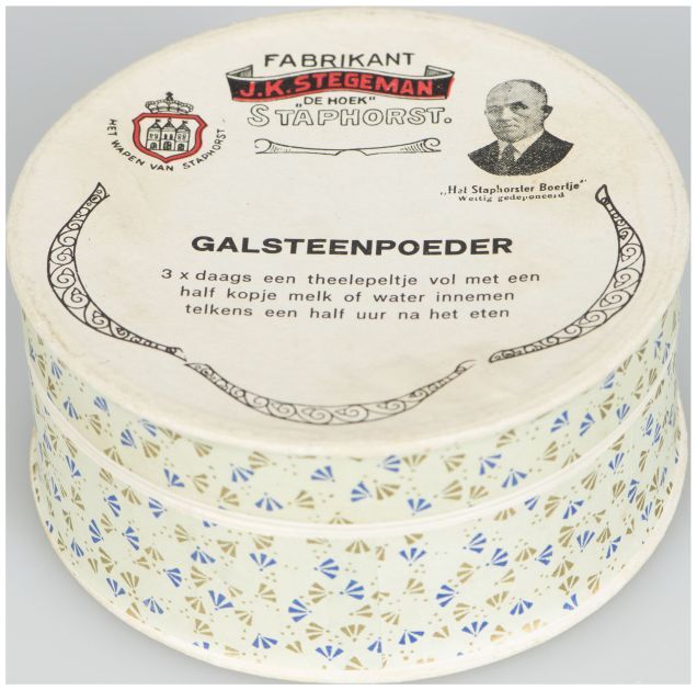 Ronde kartonnen doos galsteenpoeder J.K. Stegeman