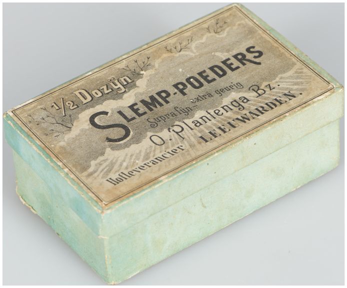 Rechthoekig kartonnen doosje Slemp-poeders O. Plante...