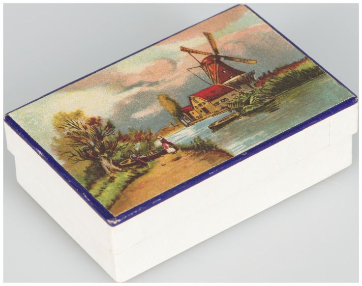 Rechthoekig doosje met kleurenplaatje van een molen ...